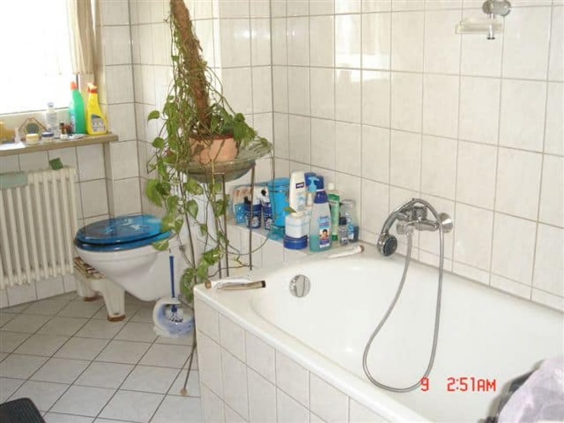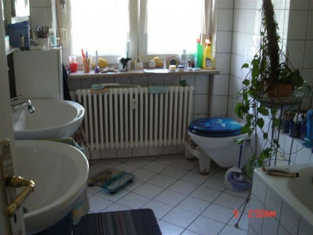 - Badezimmer (Tageslichtbad) mit Badewanne und WC, 2 x Waschbecken,