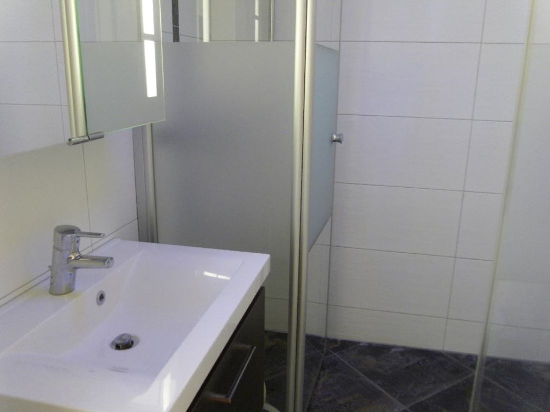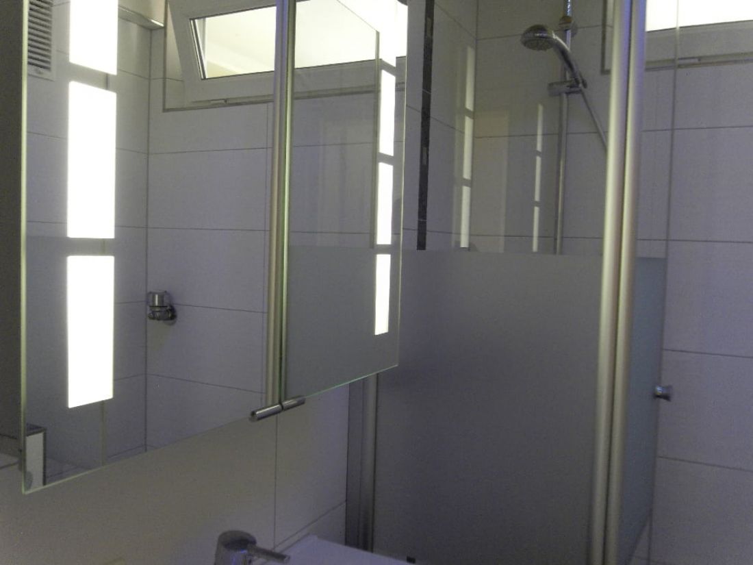 - neues Badezimmer (Tageslichtbad durch Glaselement) mit Dusche und WC, Waschbecken mit Unterschrank, Badschrank, Glasduschabtrennung,