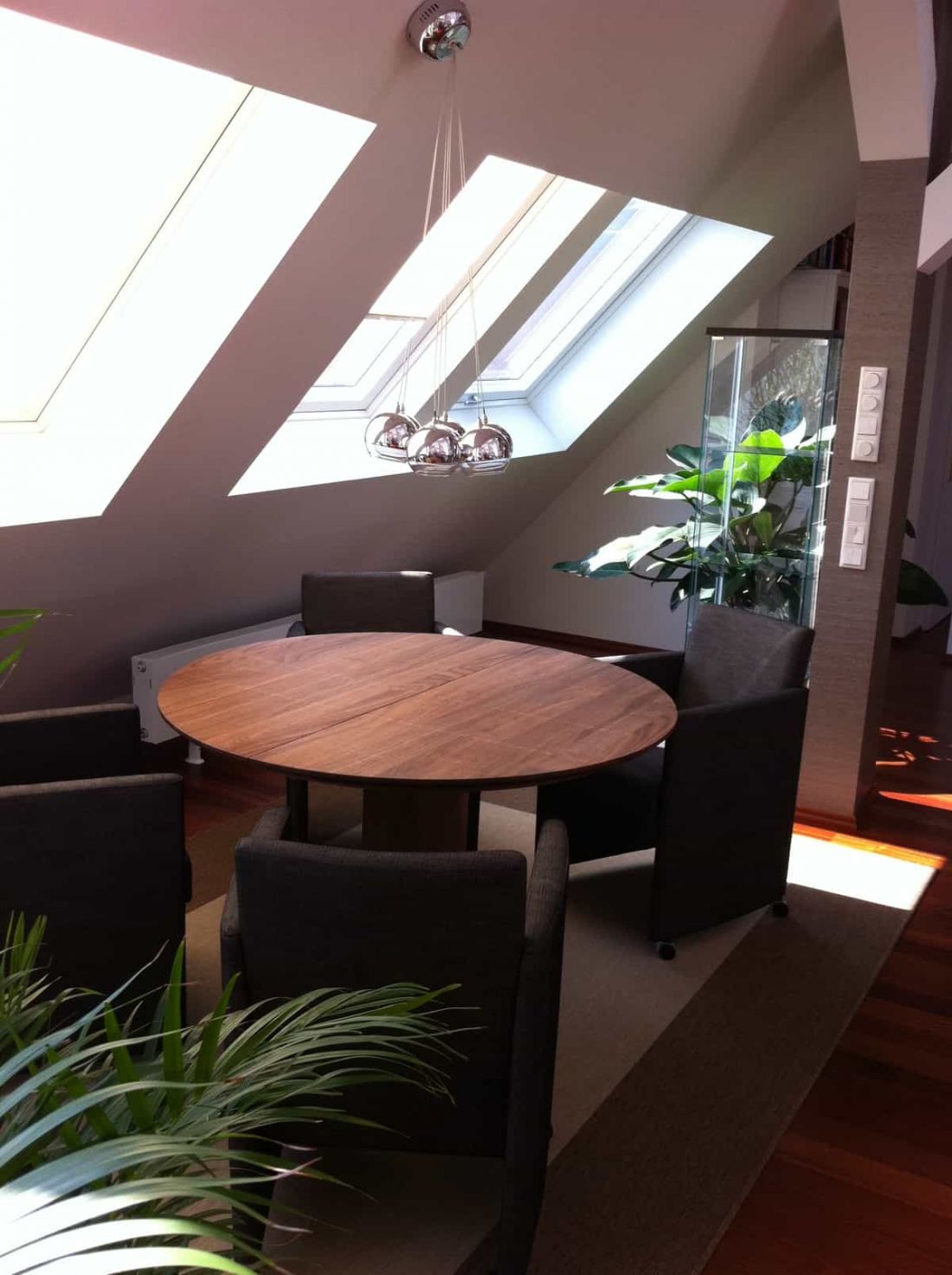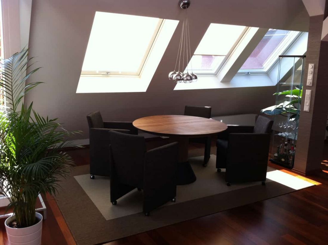 Ideale Tageslichtverhältnisse sind bedingt durch die zahlreichen Fenster sowie das Panaromaelement garantiert. Um sich gegen Sonneneinwirkung zu schützen, sind sämtliche Fenster mit Außenrollos bzw. Jalousien ausgestattet. Außerdem gehört eine Klimaanlage zum Objekt.