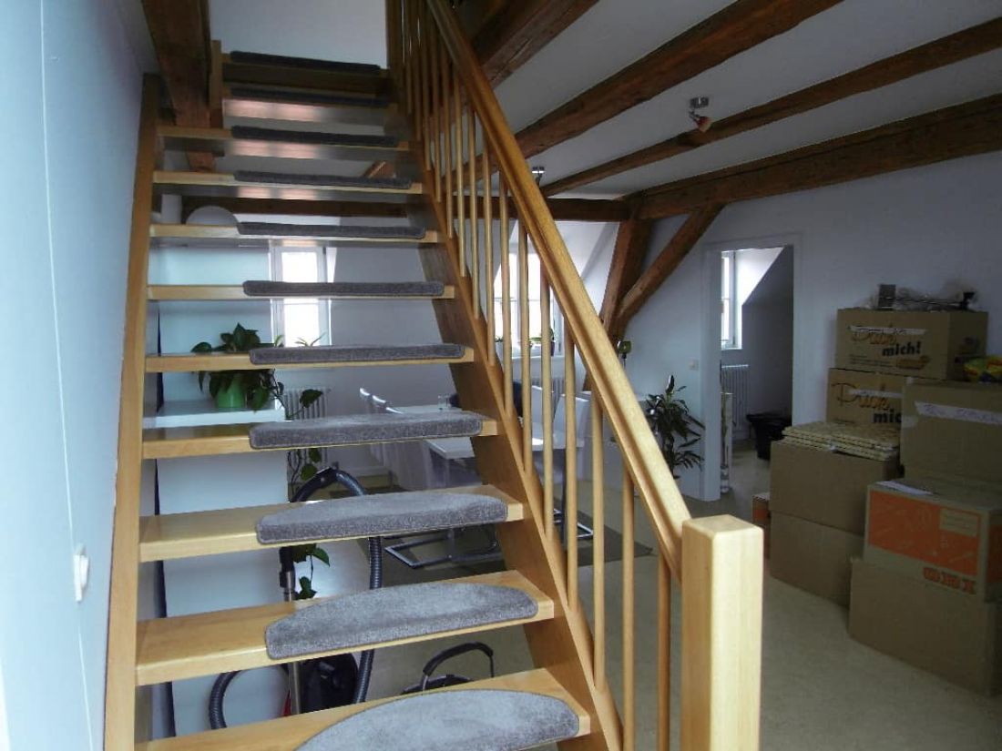 Bei der angebotenen Immobilie handelt es sich um eine gemütliche Maisonettewohnung im 3. Obergeschoß eines kleinen Wohn- und Geschäftshauses (1 Büro im Haus). Die Wohnung ist aufgeteilt in Wohnzimmer, Schlafzimmer, Badezimmer, abgeschlossene Küche und ein zusätzliches Dachstudio, welches ebenfalls als Schlaf- oder Gästezimmer genutzt werden kann.