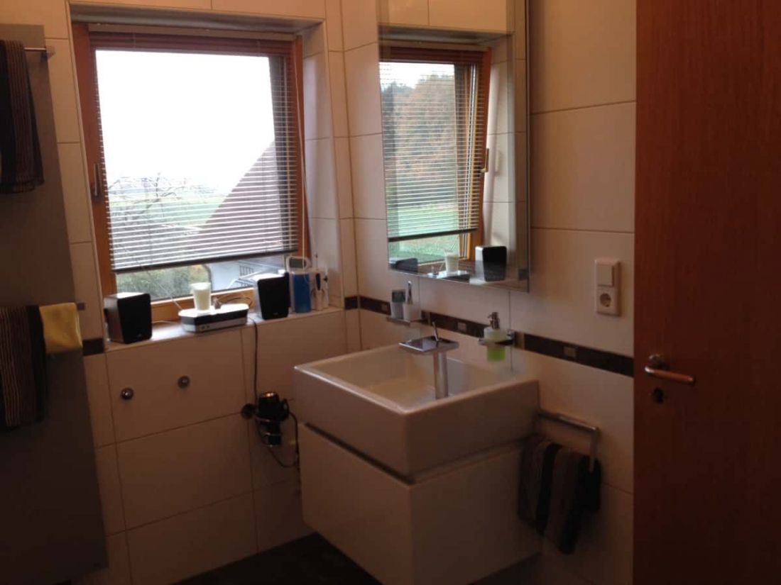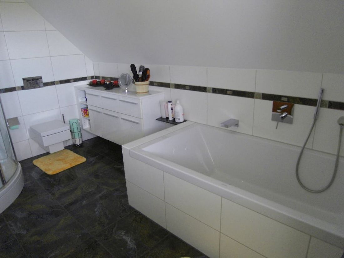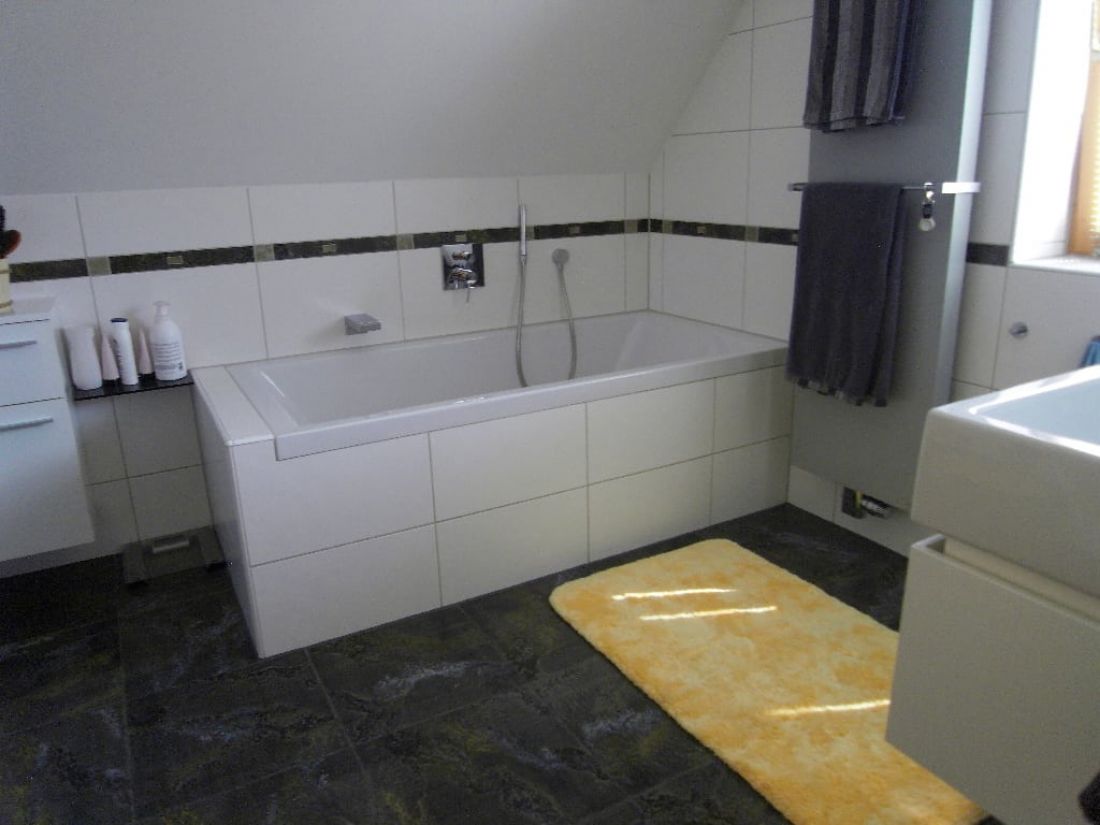 • Elternbad im OG: Wellness-Dampfdusche, Badewanne, Waschbecken mit Unterschrank