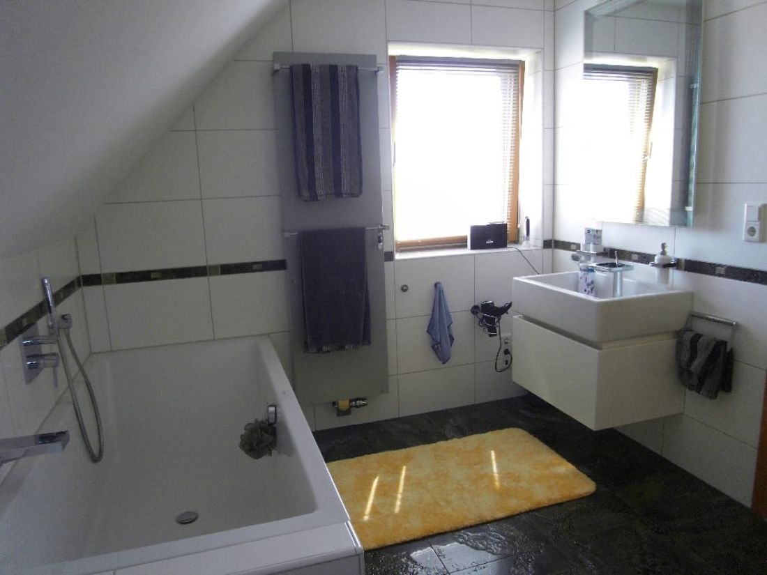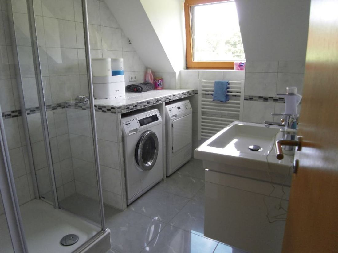 • Kinderbad im OG mit Dusche und doppeltem Waschtisch; Waschmaschinenanschluss vorhanden