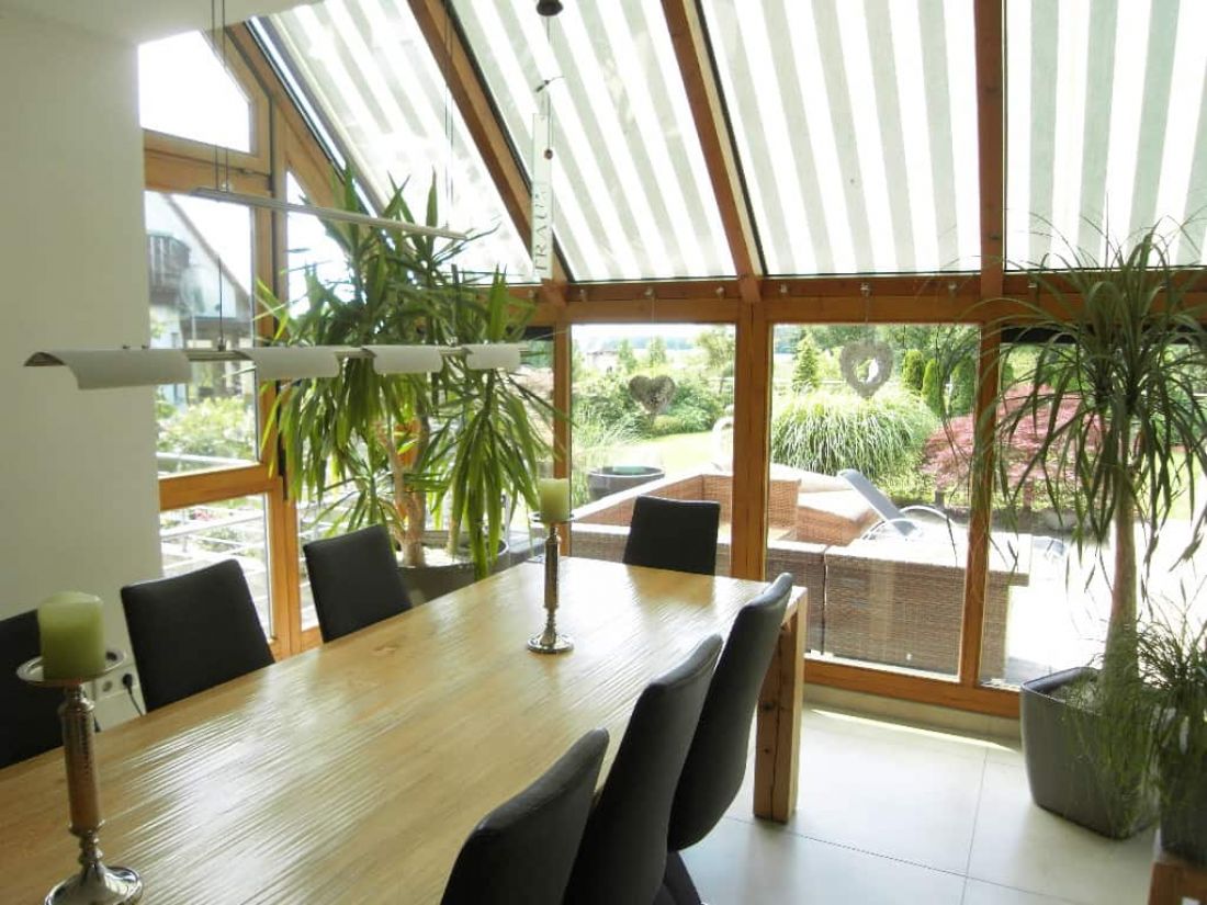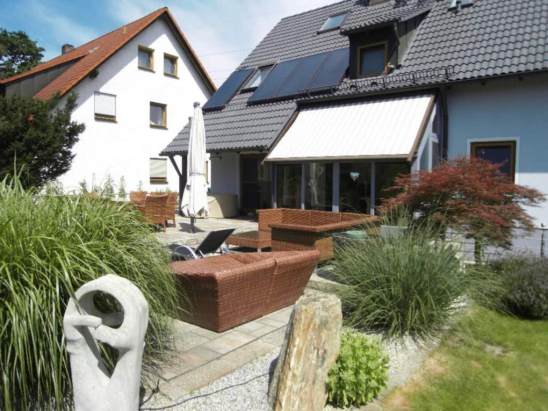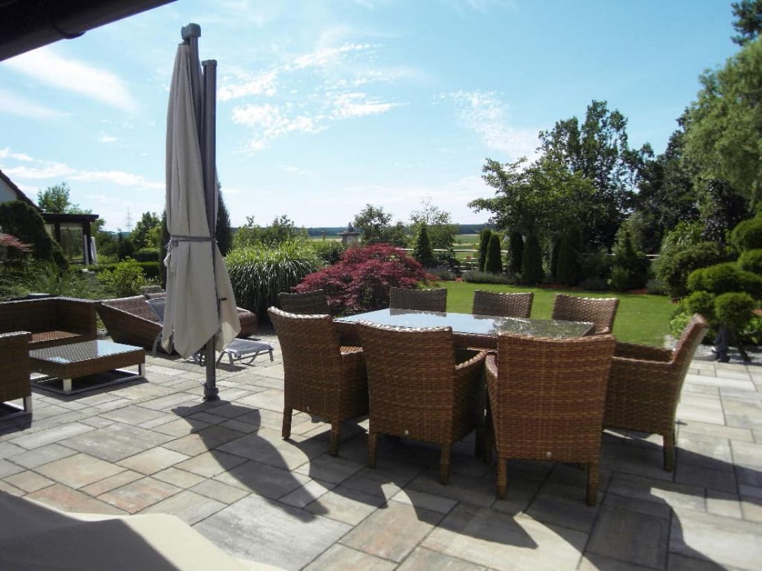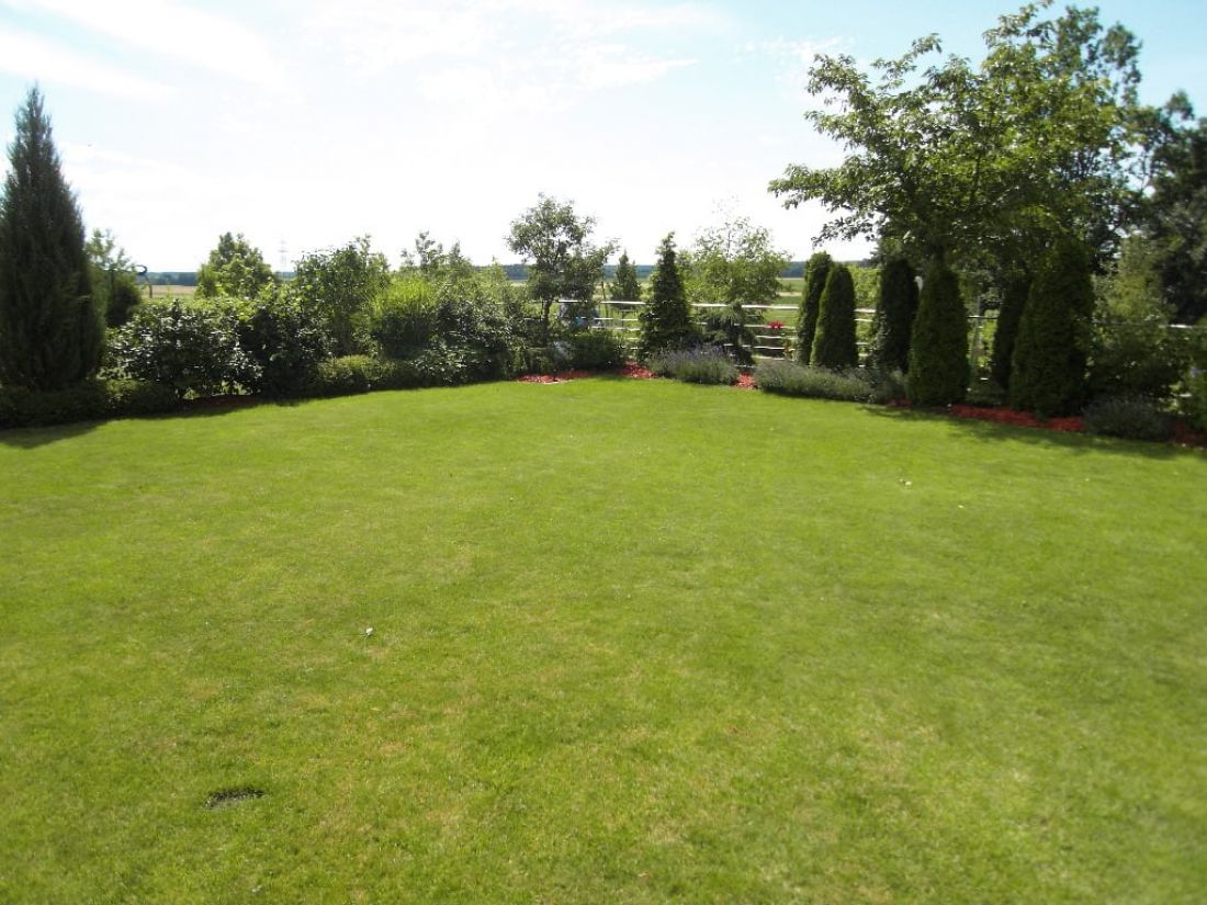 Ein besonderes Augenmerk gilt den Außenanlagen mit liebevoll durch einen professionellen Gärtner angelegten Gräsern, Sträuchern und Bäumen. Der Ausblick ist unverbaubar, da das Grundstück direkt an das Landschaftsschutzgebiet grenzt.