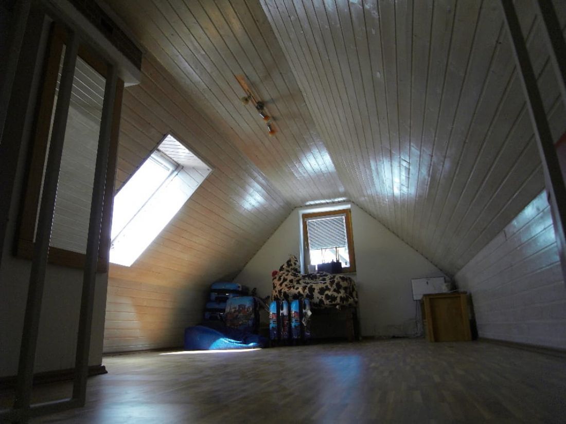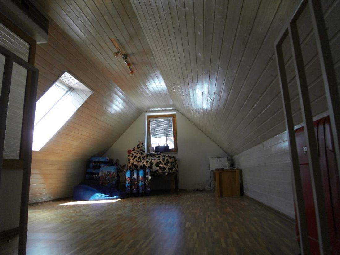Abgeschlossene Schlafräume und Bäder für die Familie befinden sich im Obergeschoss bzw. in der ausgebauten Mansarde. Eine großzügiger Wohn- und Essbereich mit abgeschlossener Küche, ein Abstellraum und das Gäste-WC gliedern das Erdgeschoss.