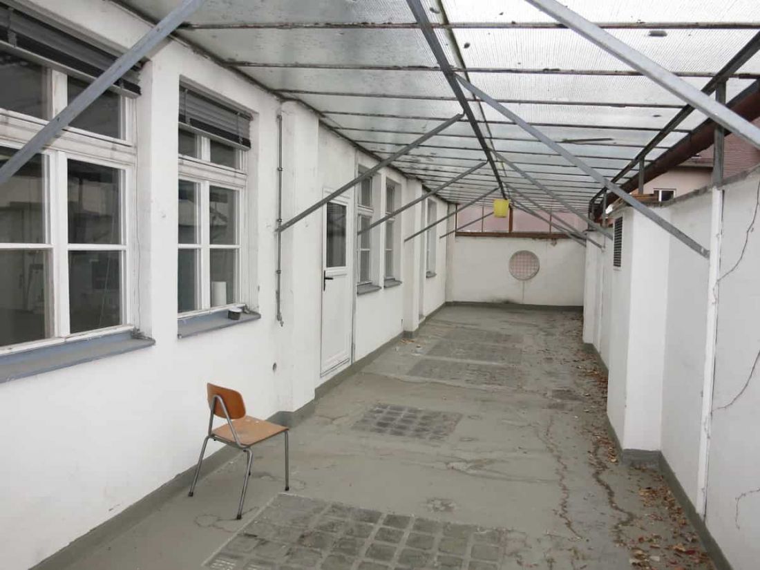Das zweigeschossige, teilunterkellerte Rückgebäude besteht aus großflächigen, gewerblich genutzten Räumlichkeiten im EG und 1. OG sowie drei Wohneinheiten im 1. OG und 2. OG.