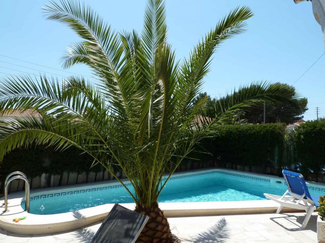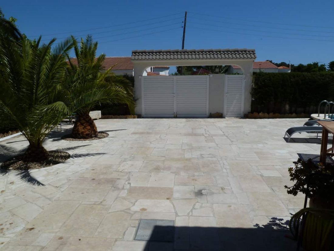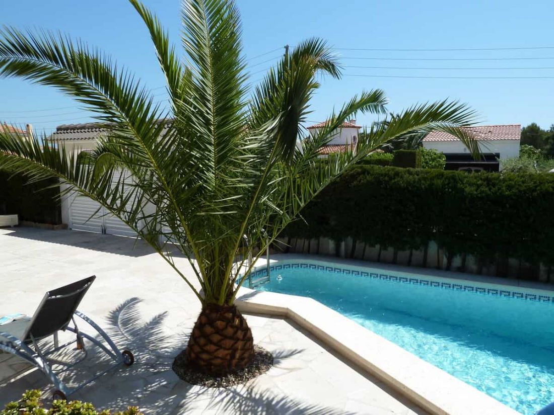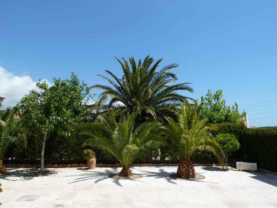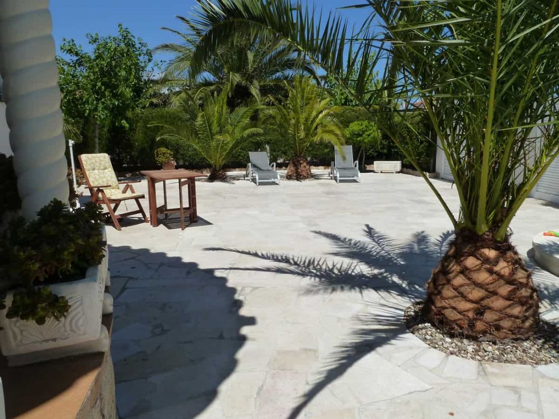 Ein besonderes Augenmerk gilt den Außenanlagen mit liebevoll angelegtem Natursteinpflaster und Palmen. Der Swimmingpool lässt sich beleuchten und verfügt über eine Umwälzpumpe. Vom Balkon aus hat man Ausblick auf das Meer!