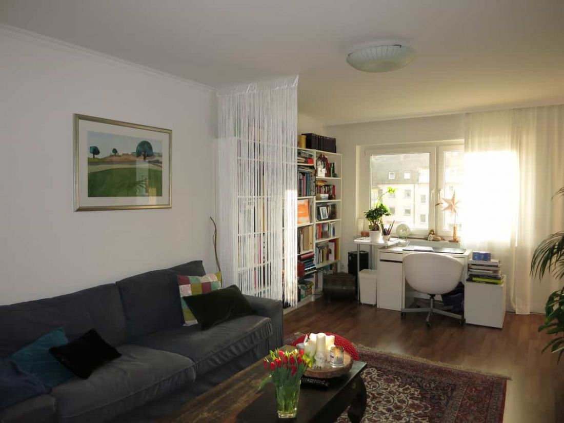 Die Wohnung ist aufgeteilt in Wohnzimmer, Schlafzimmer, Küche, Badezimmer, Flur und Abstellraum (s. Grundriss bei Bildern).