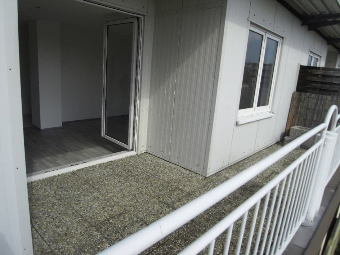 Die Wohnung ist aufgeteilt in Wohnzimmer, Schlafzimmer, Kinderzimmer, Badezimmer mit Dusche mit WC, Küche und Terrasse.