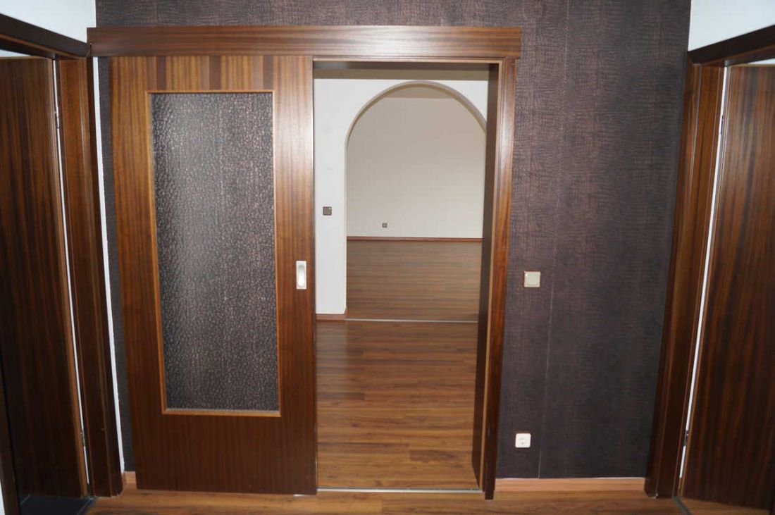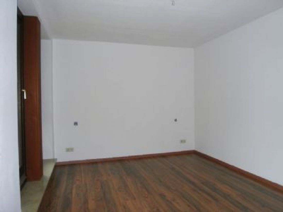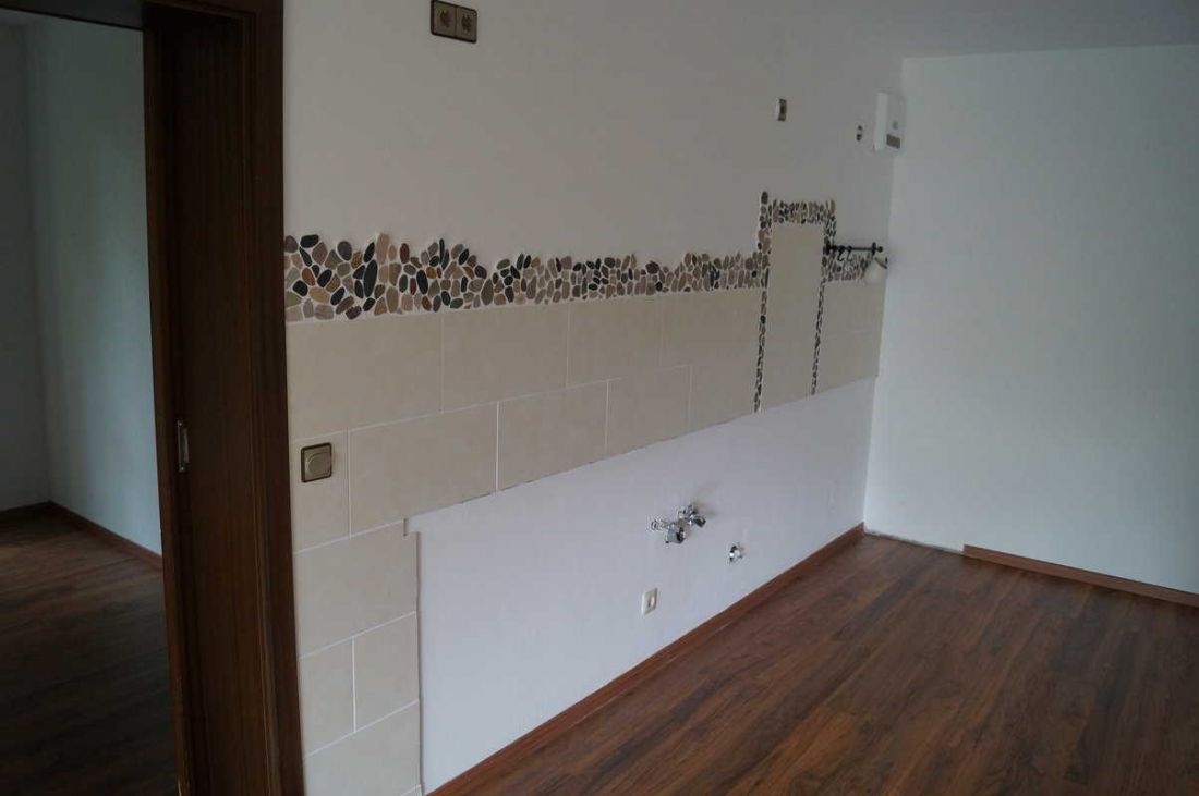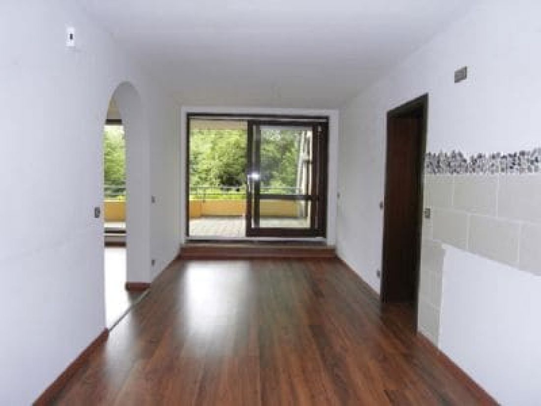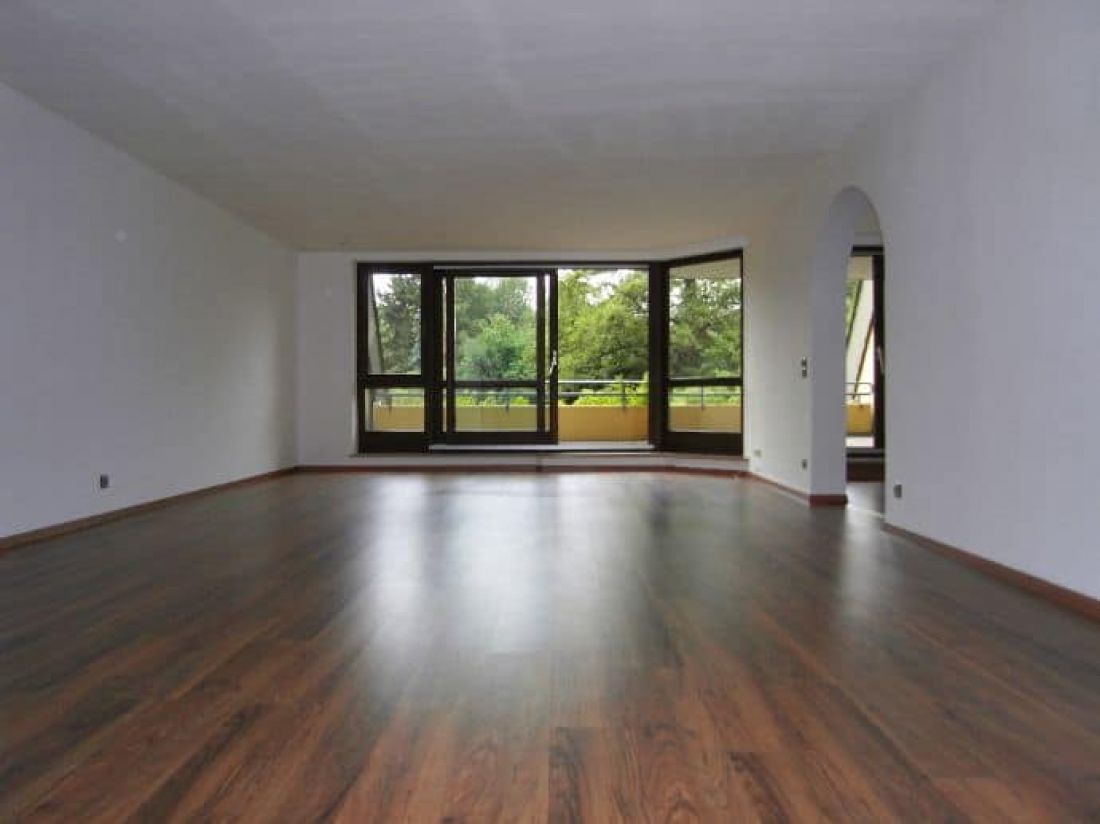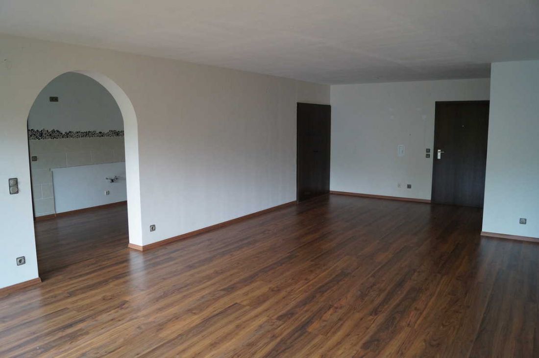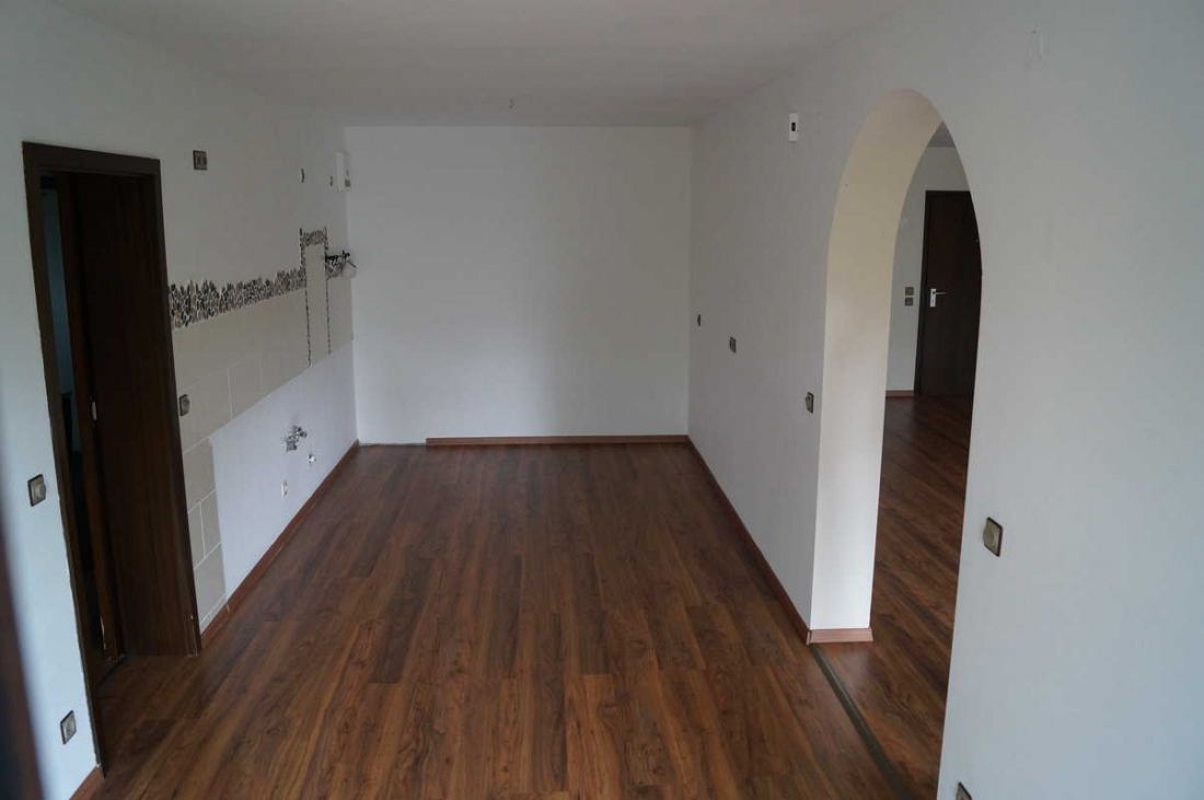 Die Wohnung ist mit Laminat in einem Nussholzton ausgelegt.