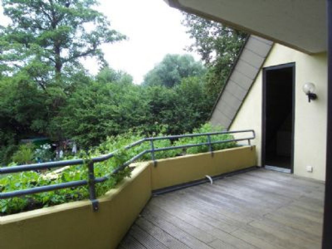 Die Wohnung verfügt über ein großes Wohnzimmer mit Loftcharakter, eine 22 qm große Terrasse in südlicher Ausrichtung mit Ausblick in einen Wiesengrund, ein zum Garten gelegenes Schlafzimmer mit der Möglichkeit eines begehbaren Kleiderschranks und Bad en Suite, sowie eine Küche mit angrenzendem Speisebereich. Bitte beachten Sie: Eine Einbauküche ist NICHT vorhanden.