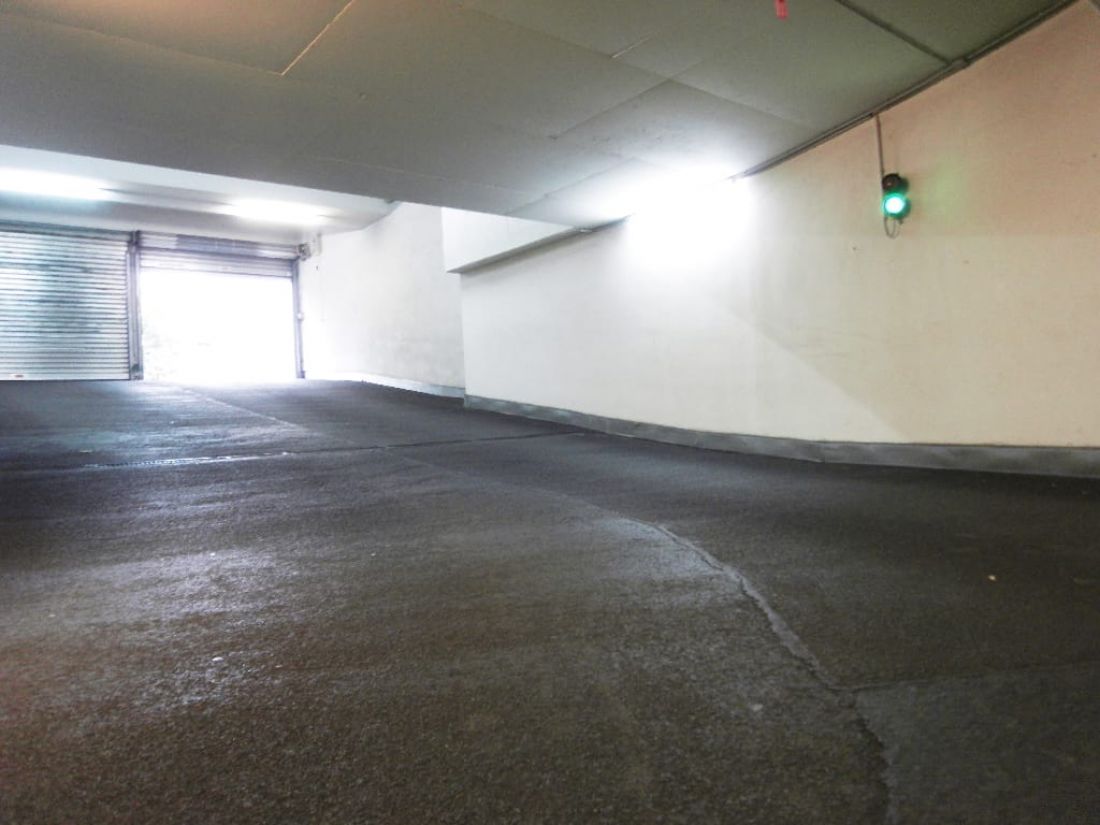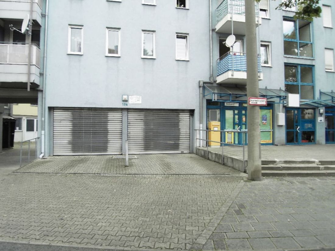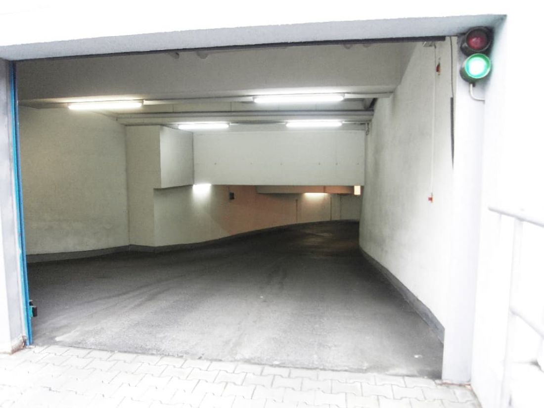 Die Zufahrt ist duch ein automatisches Rolltor verschlossen. Es handelt sich um einen Einzelstellplatz - also keinen Duplex- oder Vierfachparker.