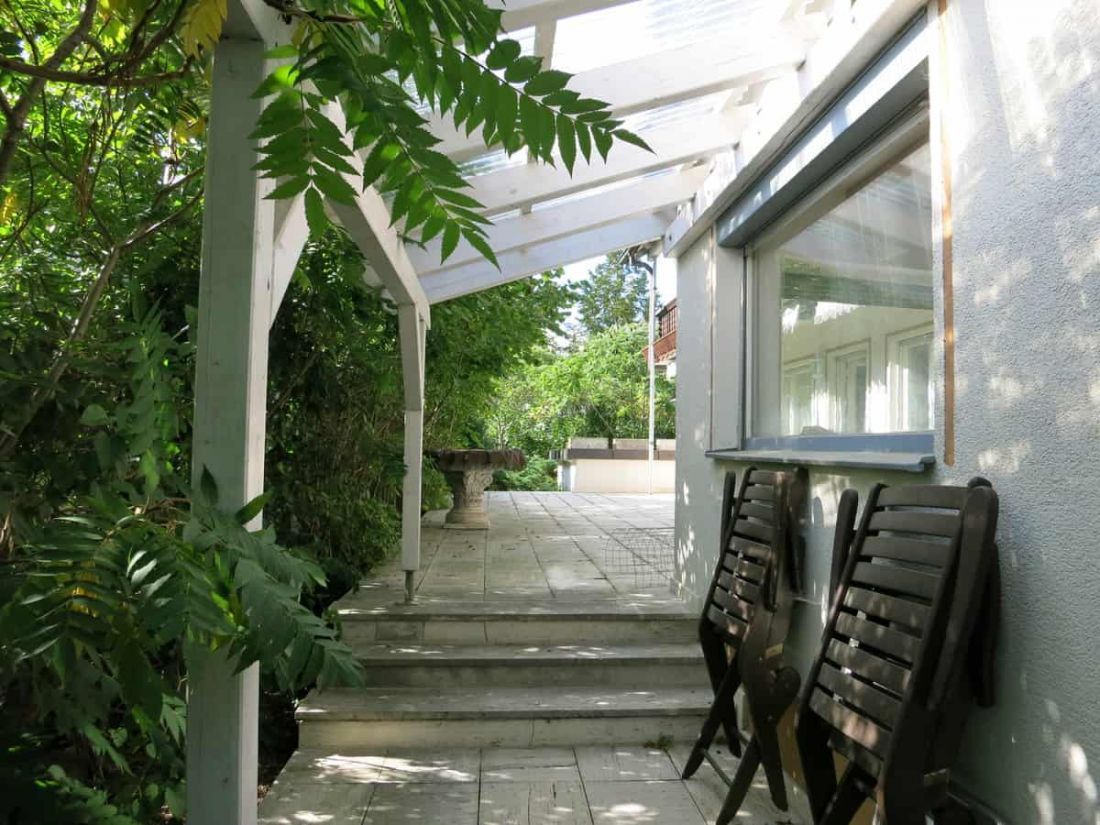 Viel Grün, eine sichtgeschützte Terrasse und ein Balkon in Süd-West-Ausrichtung komplettieren das großzügige Anwesen.