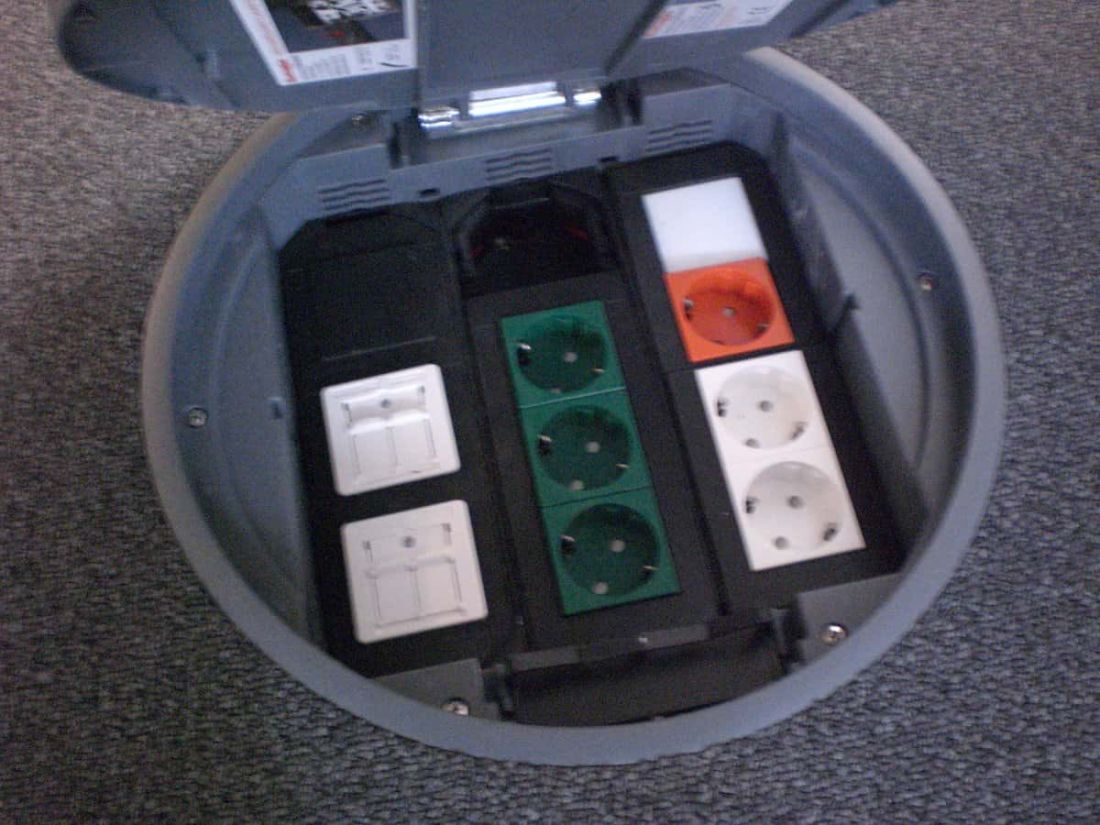 • Unterflurdosen mit Strom, Netzwerk (Cat 7) und Telefon in
