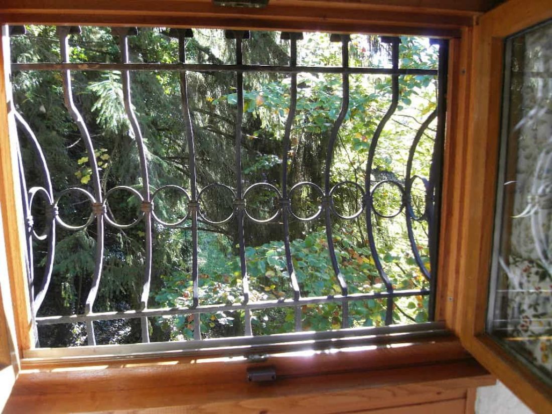 - Einbruchsicherung für das Wohnhaus; schmiedeeiserne Gitter im EG u. Alarmanlage