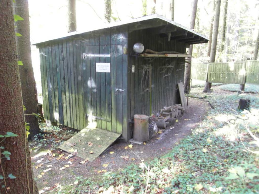 - Gerätehaus mit Holzlege