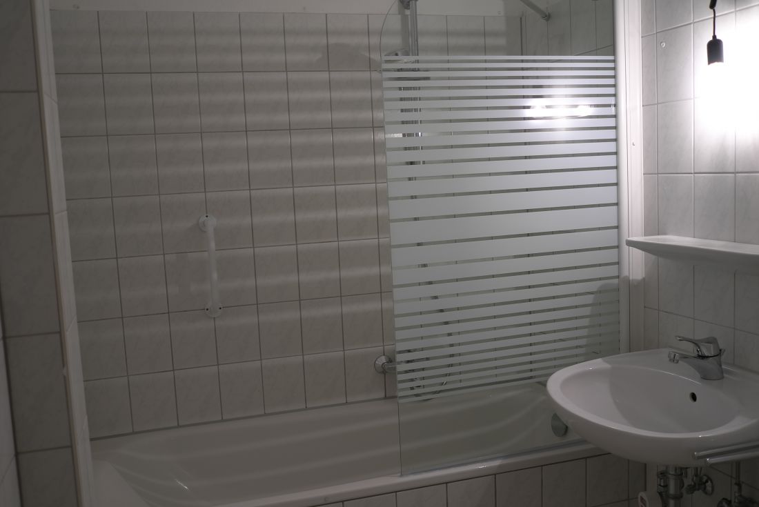 - Bad mit Wanne und neuer Glasduschabtrennung