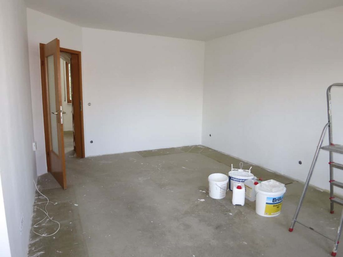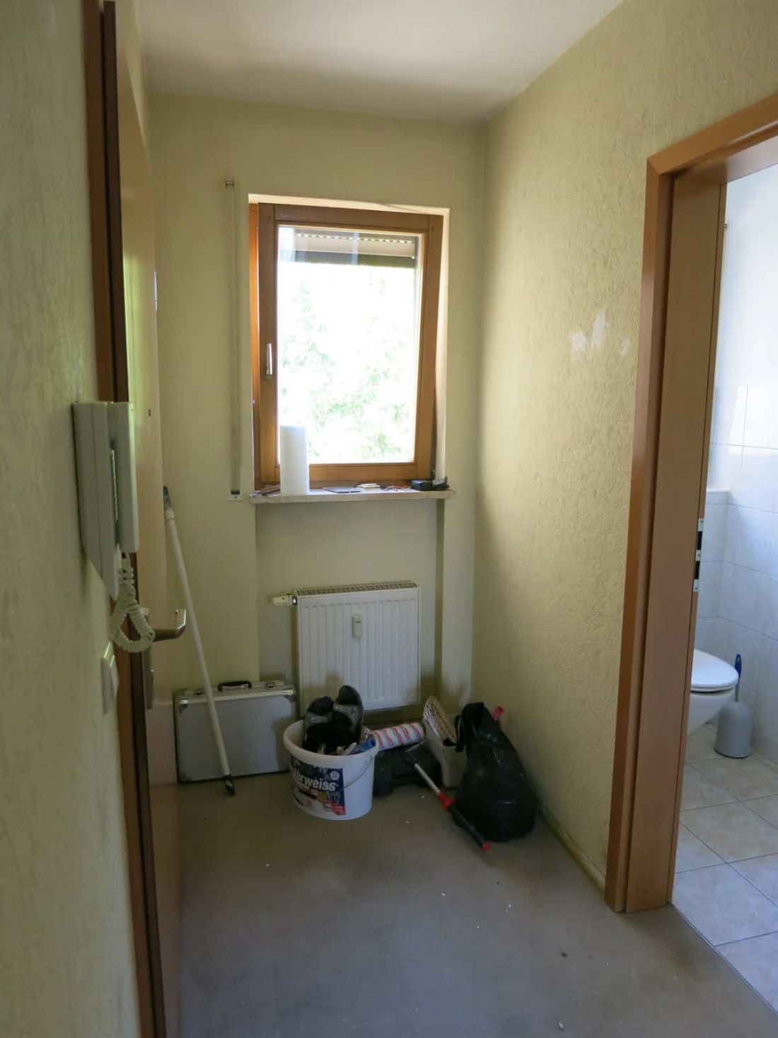 Die Wohnung wird aktuell renoviert und ist aller Voraussicht nach ab dem 01.09.2015 bezugsfertig. Die Renovierungsmaßnahmen umfassen unter anderem das Verlegen eines neuen Laminatbodens auf Trittschalldämmung sowie das Streichen aller Räumlichkeiten und des Kellers.