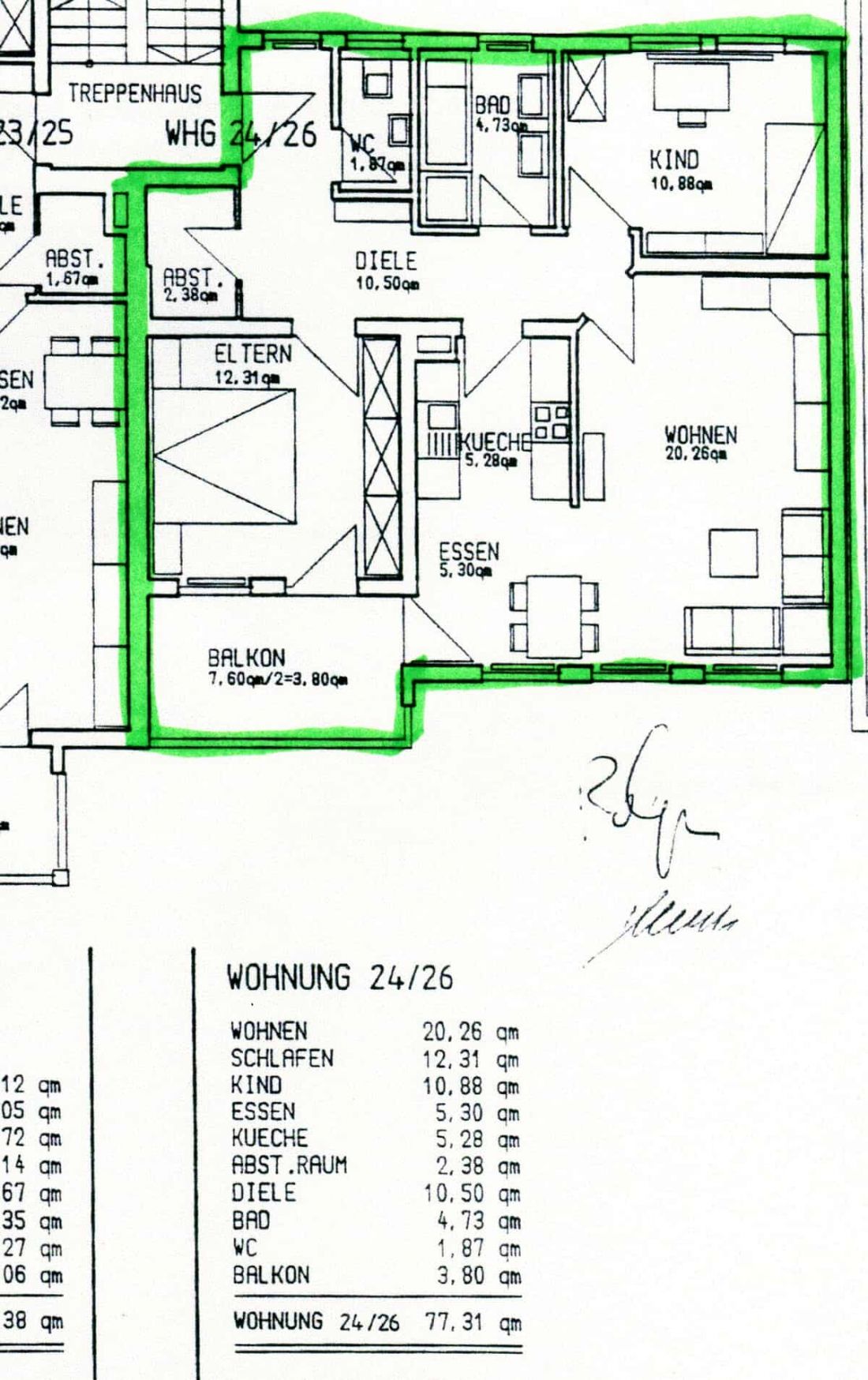 Das Objekt verfügt über Wohn-, Arbeits-/Kinder- und Schlafzimmer, Tageslichtbad, Gäste-WC, Abstellraum sowie einen großen Balkon in Süd-Ausrichtung.