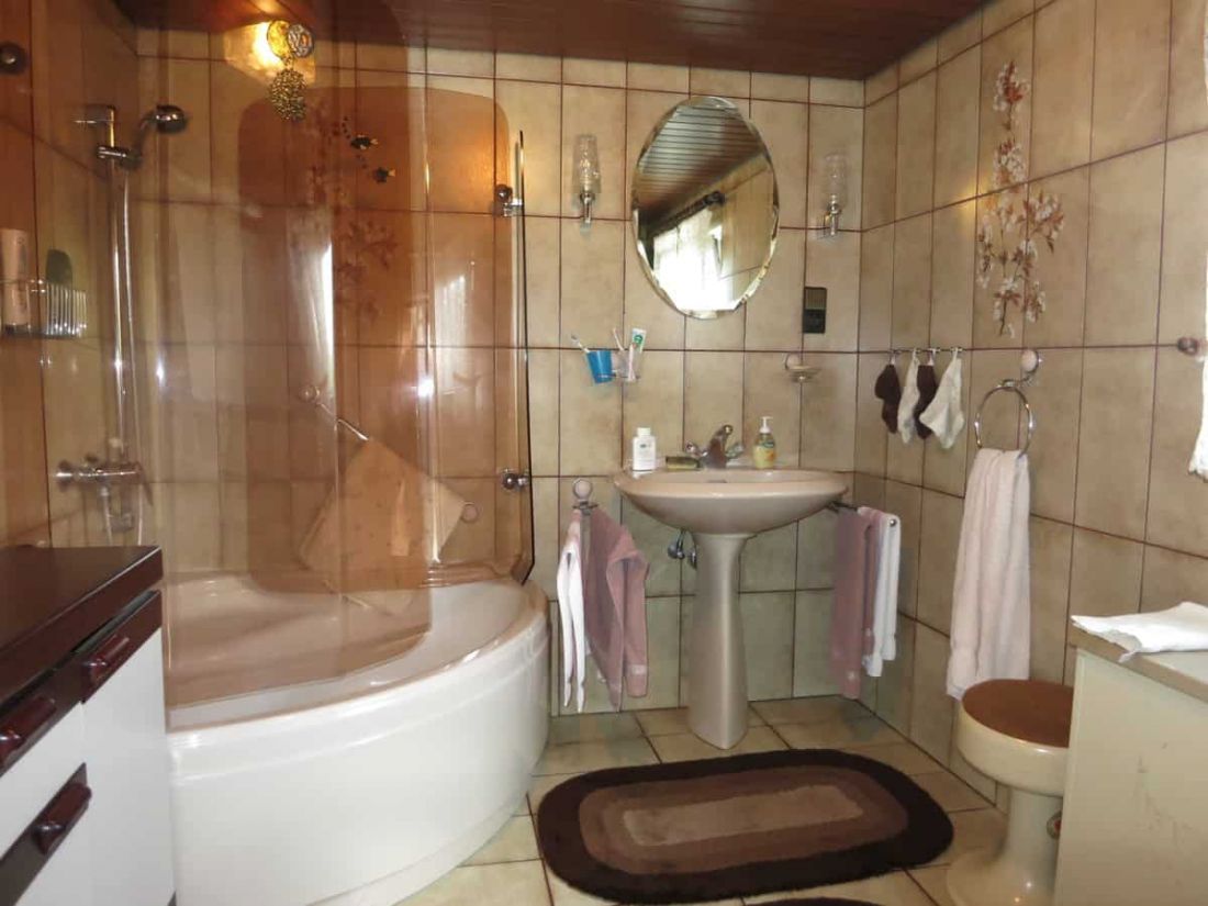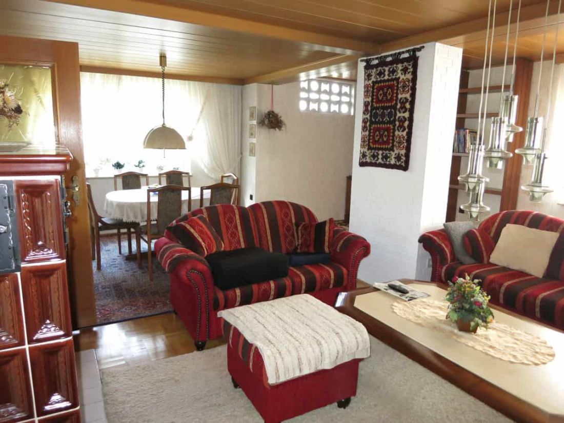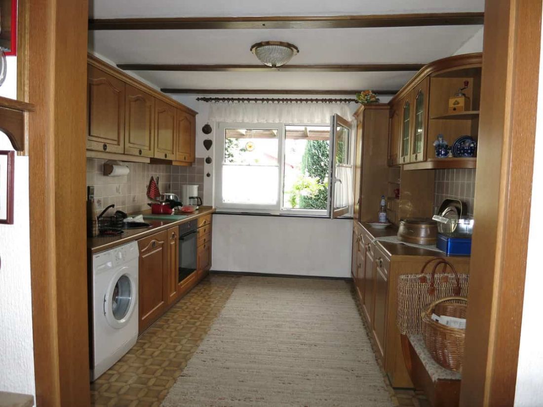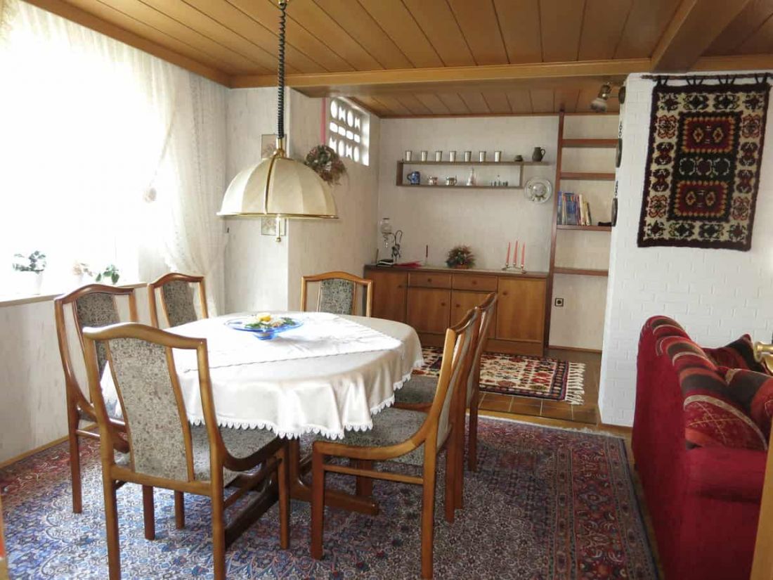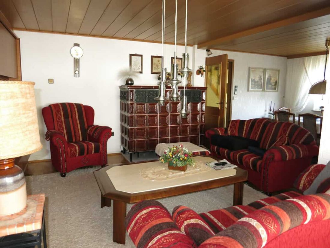 Beheizt wird das Haus über einen im Wohnzimmer befindlichen Kachelofen, in welchem eine Ölheizung von Buderus installiert ist.