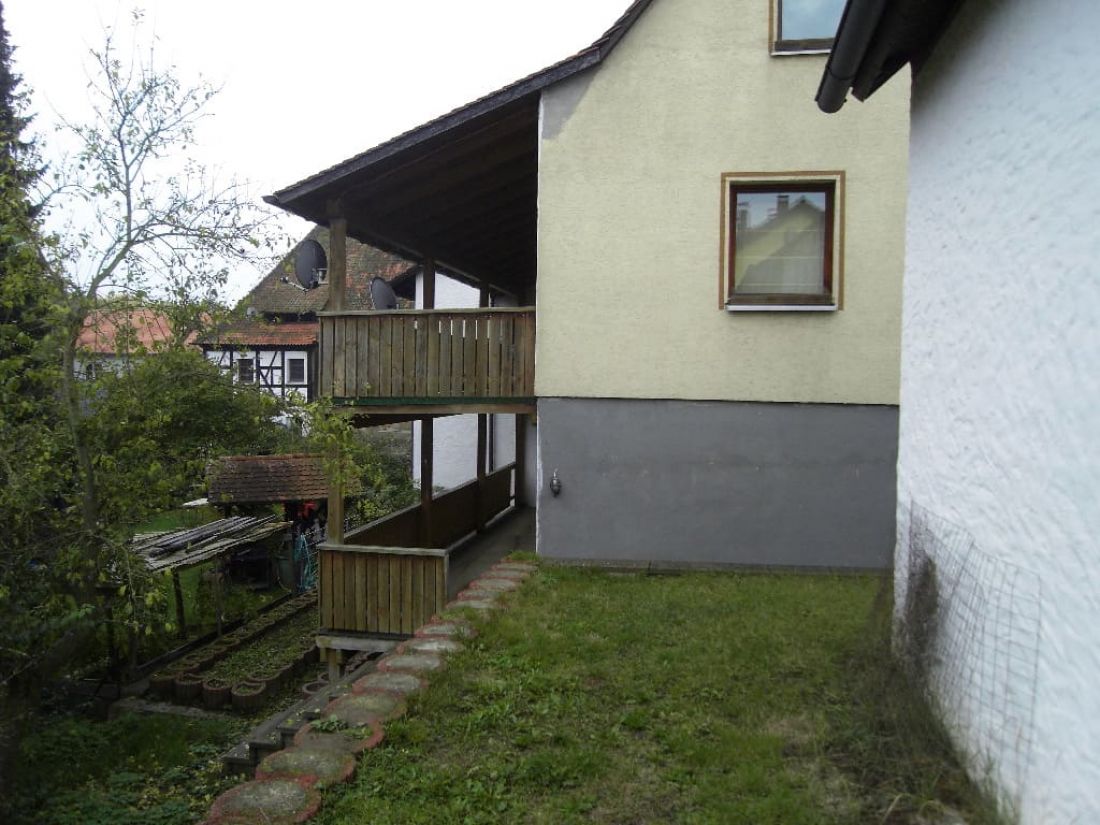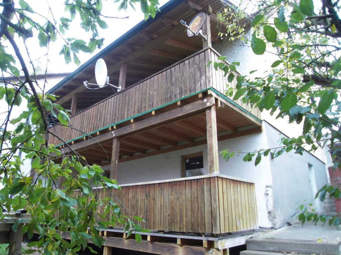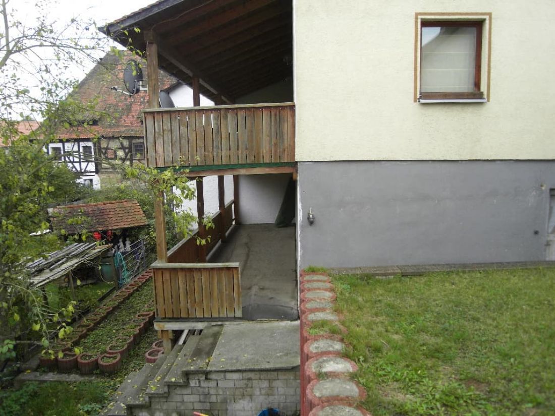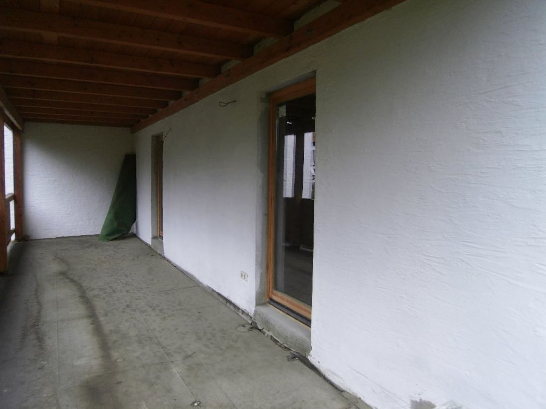 An der Südseite wurde vor ca. acht Jahren eine massive Balkonanlage errichtet, welche bisher von den Nachbarn geduldet, jedoch baurechtlich vom früheren Eigentümer nicht beantragt wurde. Aktuell ist in der Klärung, ob der Balkon zurückgebaut wird oder man das baurechtliche Genehmigungsverfahren nachholt.