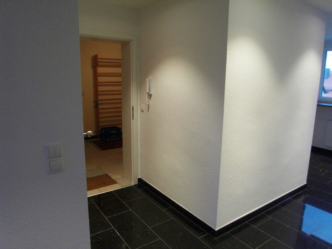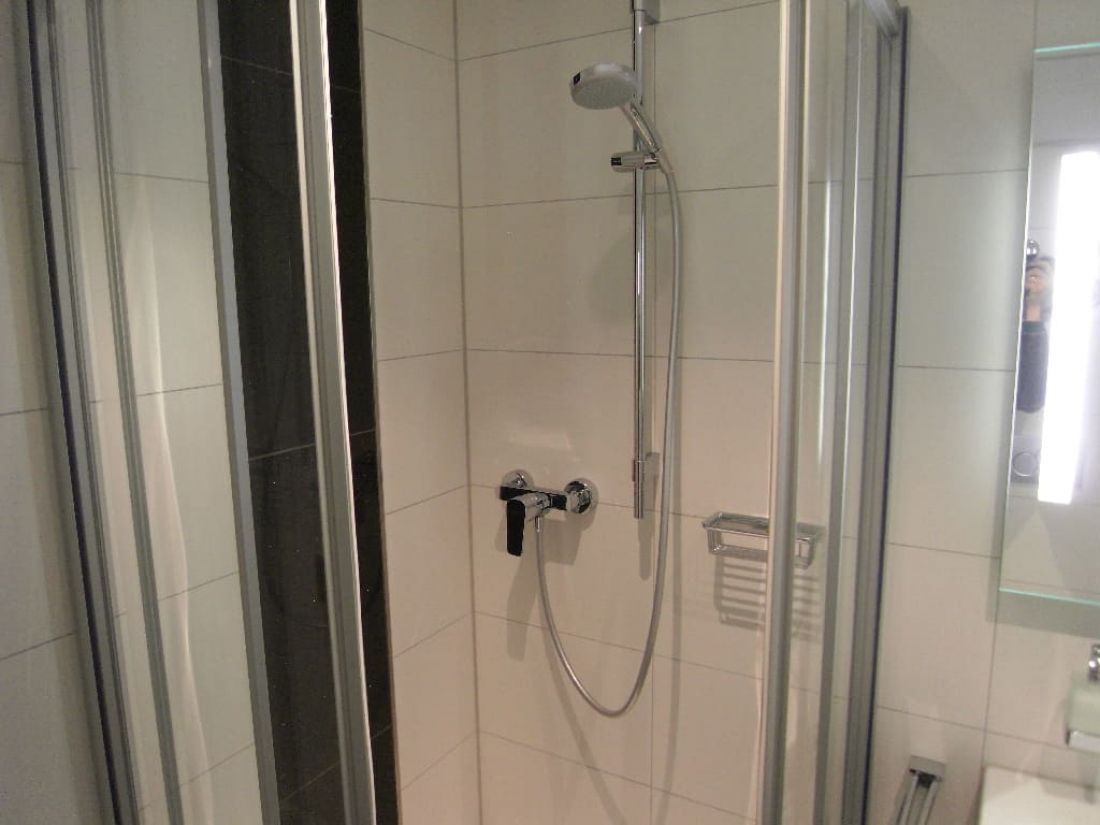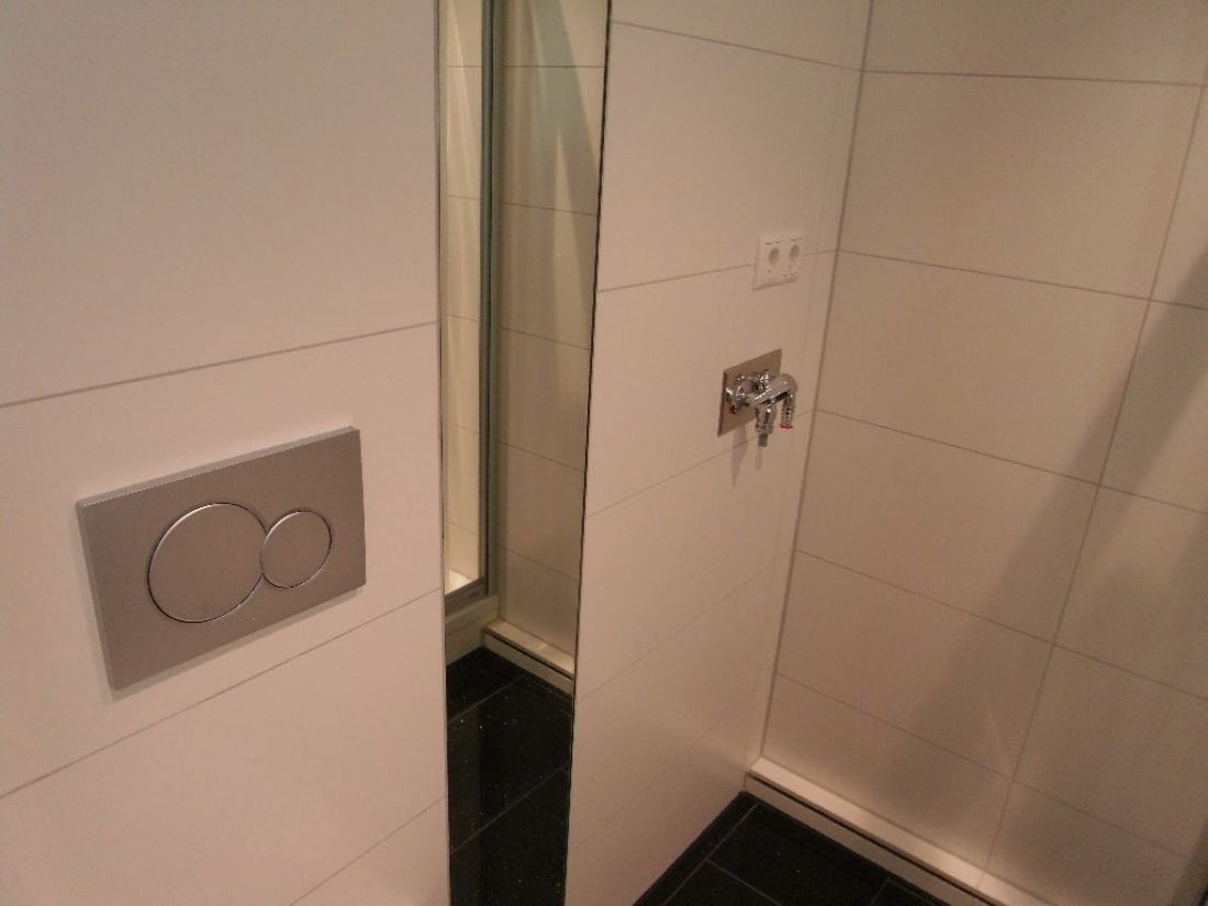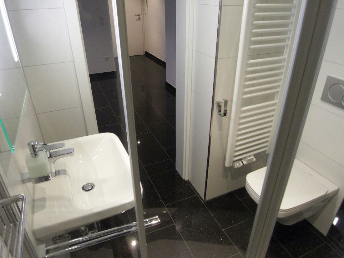 - Duschbad, Handtuchtrocknerheizkörper, in die Wandfliesen integrierter raumhoher Spiegel, Glasduschabtrennung, Waschmaschinenanschluss, LED beleuchteter Spiegel über dem Waschbecken, elektr. Außenentlüftung
