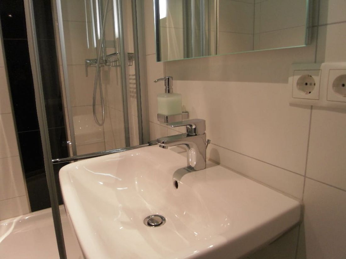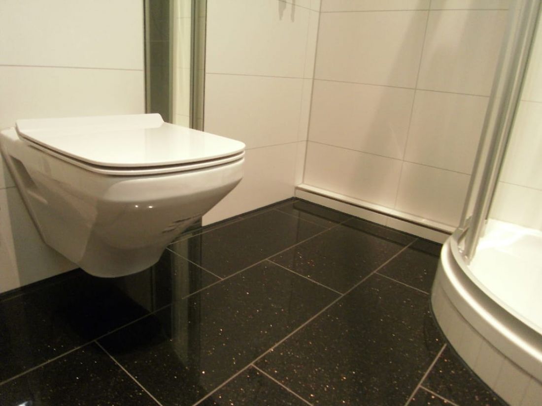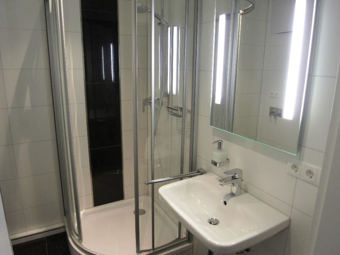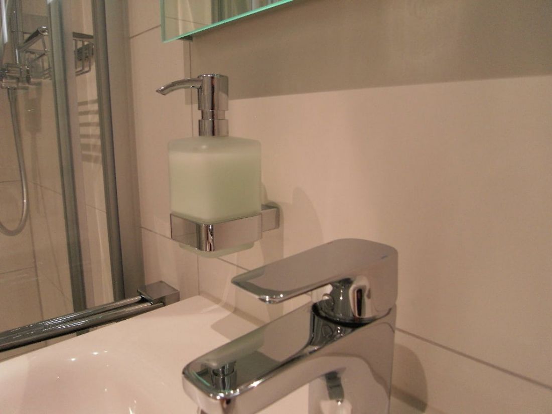 - Duschbad, Handtuchtrocknerheizkörper, in die Wandfliesen integrierter raumhoher Spiegel, Glasduschabtrennung, Waschmaschinenanschluss, LED beleuchteter Spiegel über dem Waschbecken, elektr. Außenentlüftung