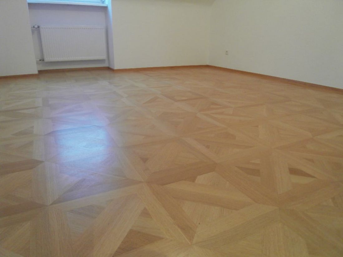 - Fußböden: Naturstein Granit (Galaxy Star/ Format 60 x 30), durchgehend verlegt in: Diele, Küche, Wohnzimmer und Bad/ Eichen-Tafelparkett im Schlafzimmer