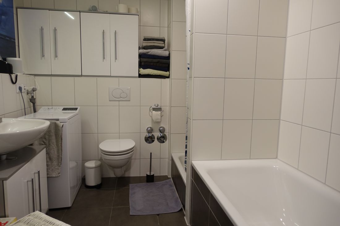 - innenliegendes Bad mit Wanne und Dusche; Waschmaschinenanschluss im Bad, WC, Spiegel, Waschbecken, Handtuchtrocknerheizkörper