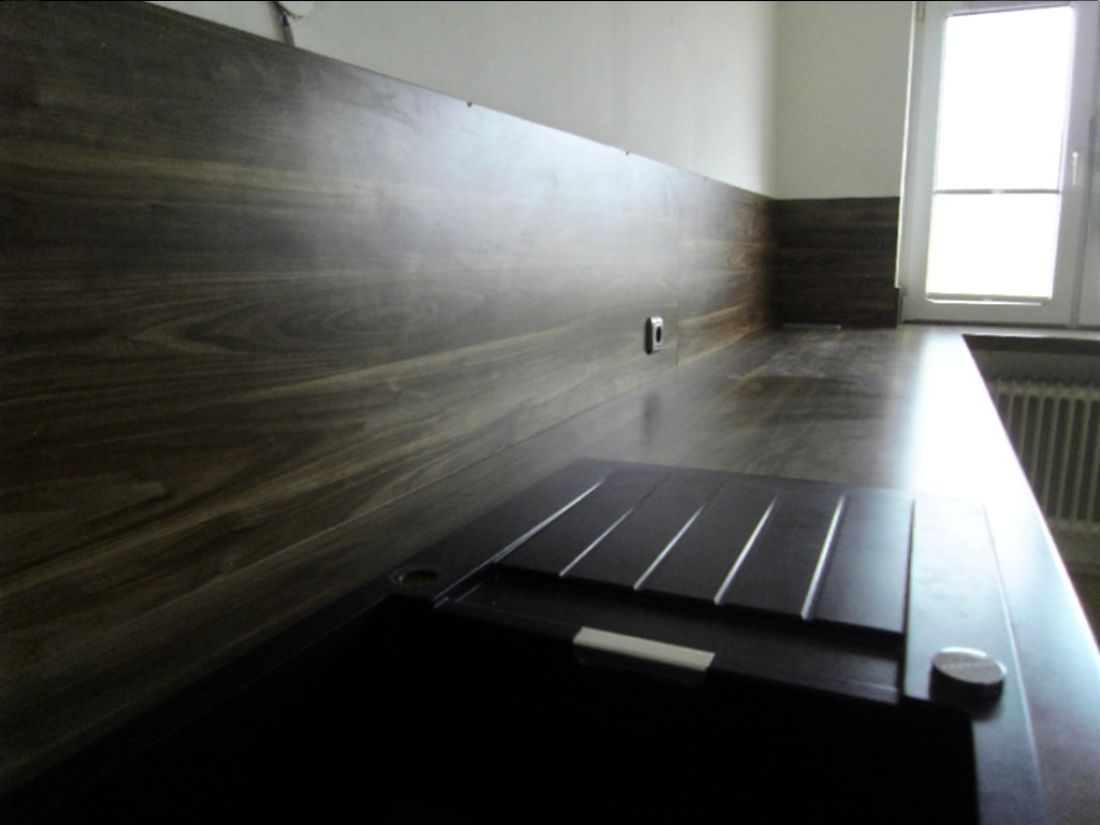 - in der Küche befindet sich eine bereits angepasste Arbeitsplatte mit Waschbecken; Küchenmöbel und Elektrogeräte (z.B. Induktionskochfeld) können bei Bedarf vom Vormieter gegen Ablöse erworben werden
