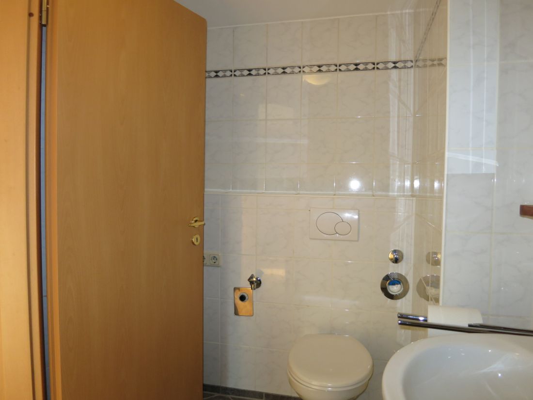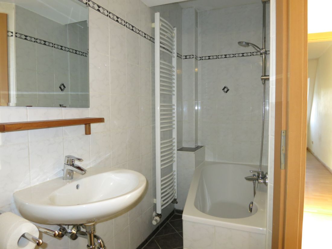 Das Badezimmer ist mit einer Badewanne und einem Handtuchheizkörper ausgestattet. Ferner befindet sich hier der Anschluss für die Waschmaschine.