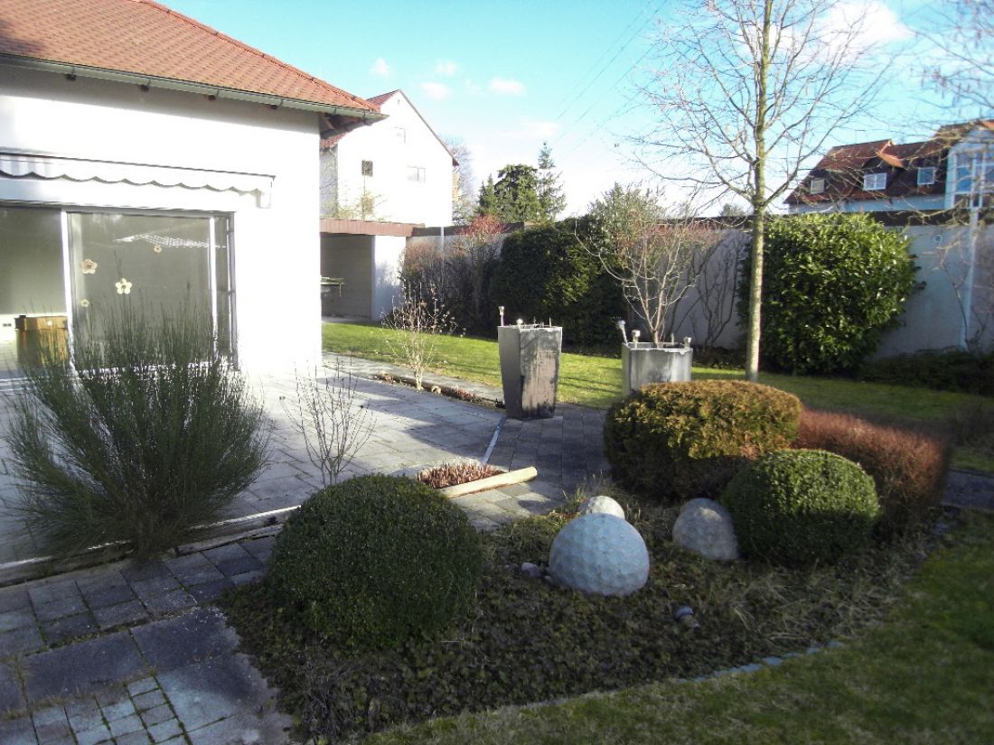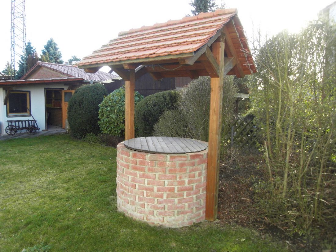 In dem liebevoll angelegten Garten befinden sich ein massives Gartengerätehaus, eine Regenwasserzisterne sowie ein Brunnen.
