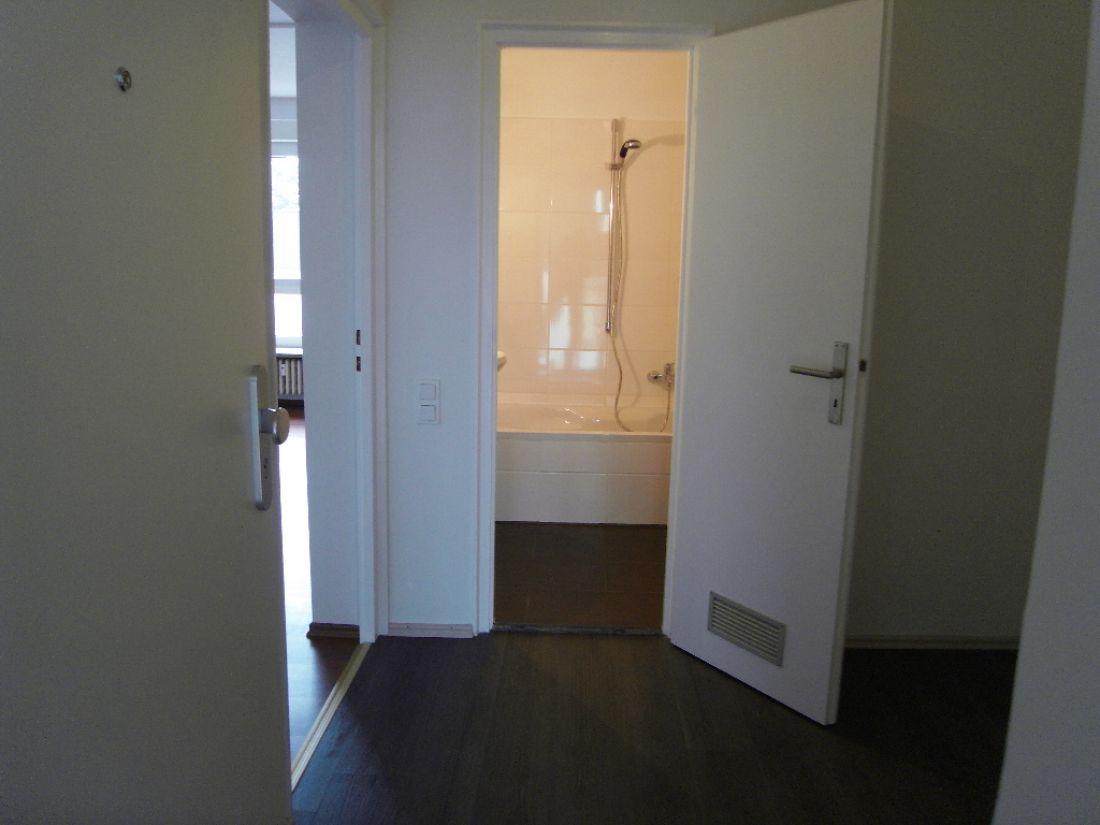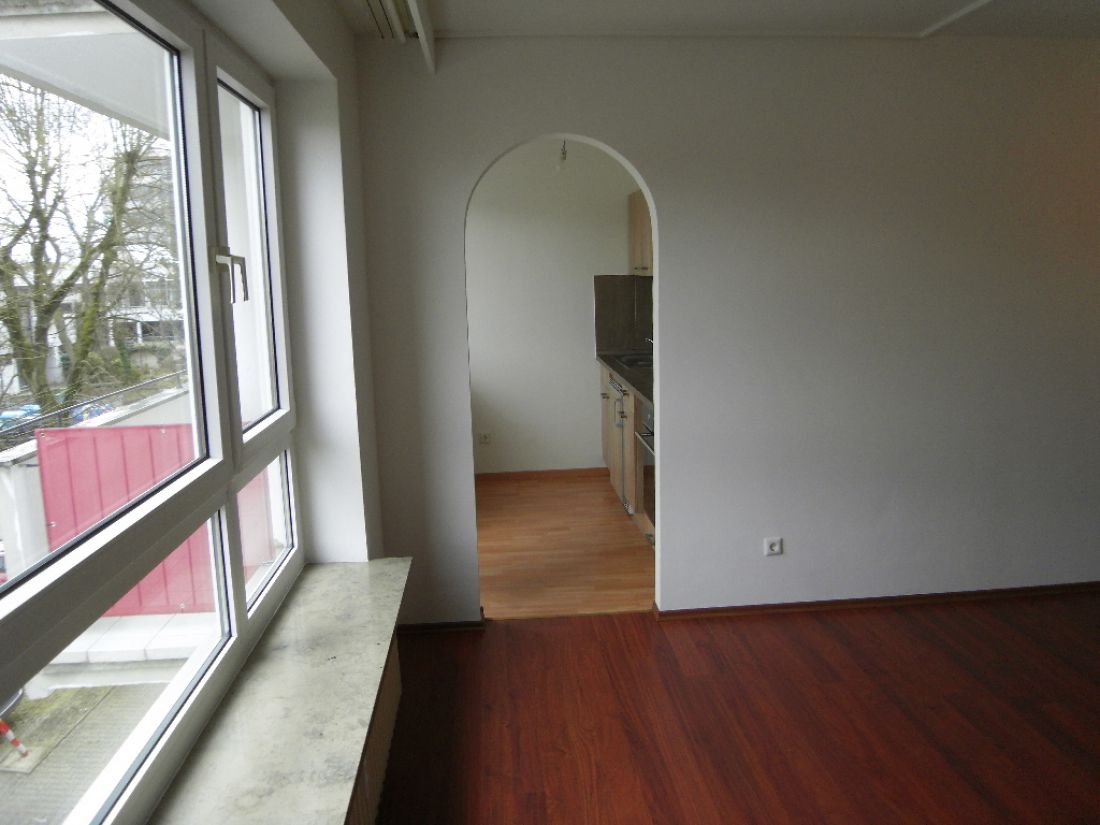Die Wohnung ist aufgeteilt in Diele, Wohnzimmer, innenliegendes Bad (mit Lüftung) mit Wanne + WC und eine Küche mit Zugang zur Loggia (Süd-West-Ausrichtung).
