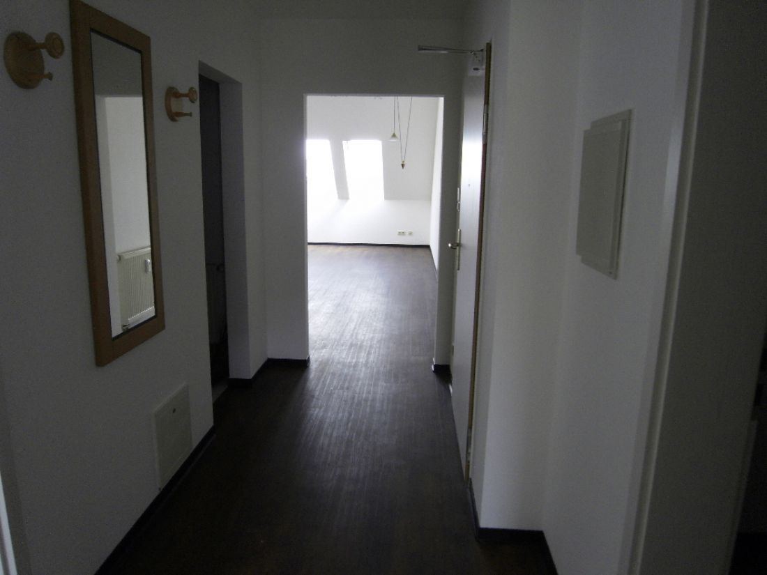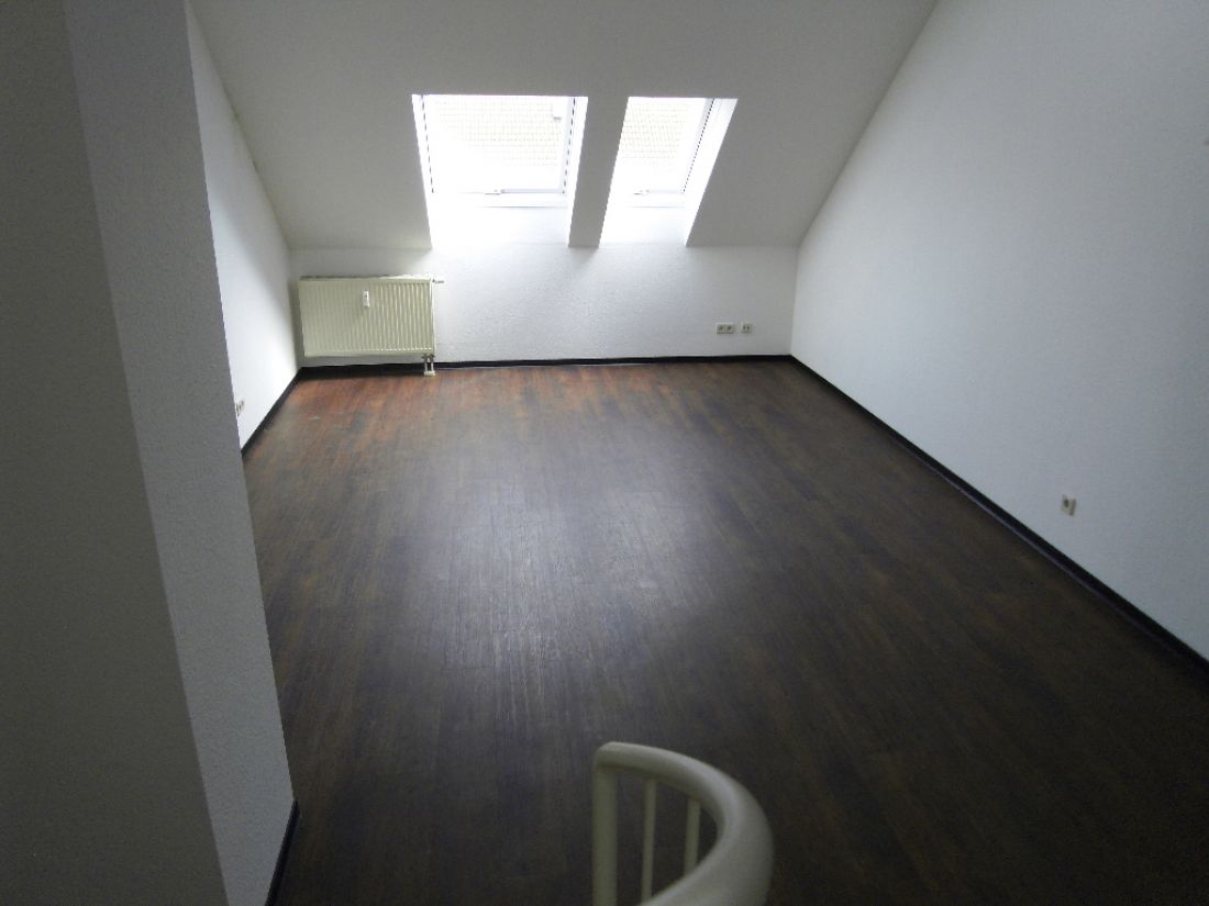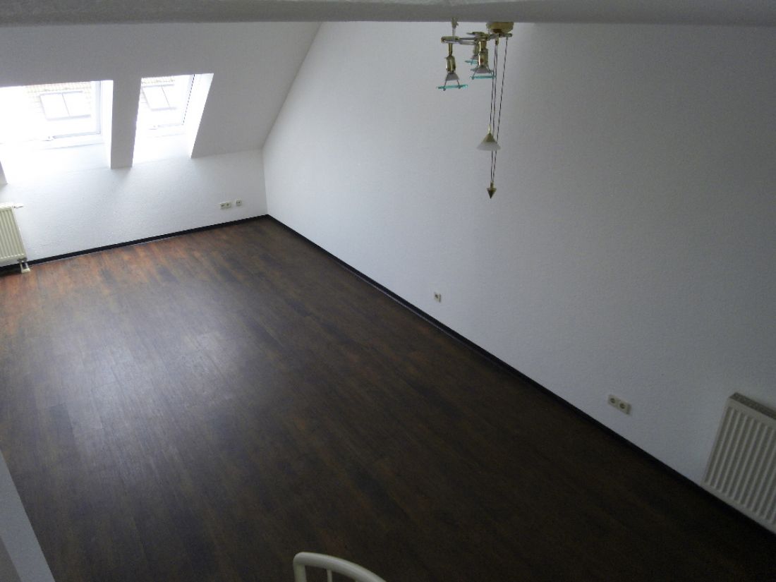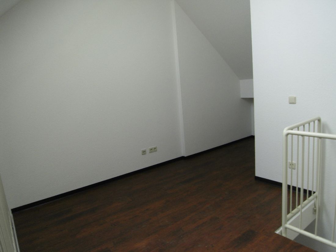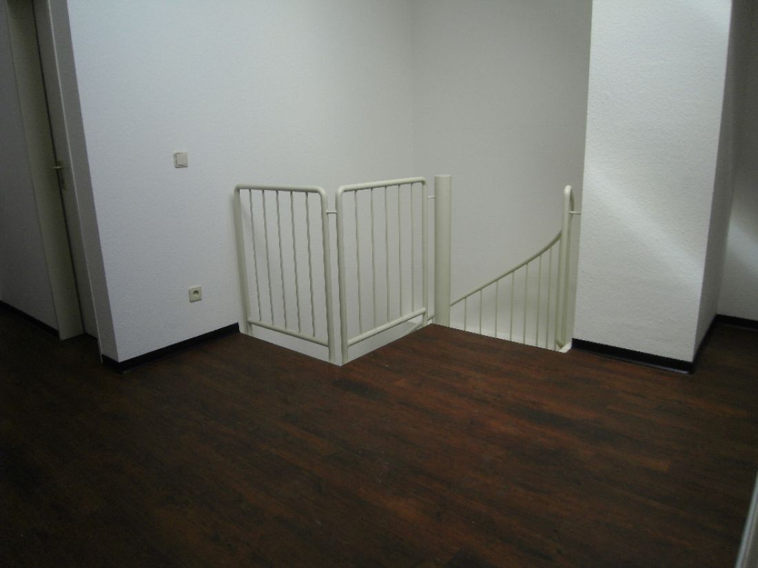 Die Wohnung ist aufgeteilt in zwei Etagen. In der 1. Etage befinden sich eine Diele, Abstellraum, innenliegende Küche (mit elektr. Abzug und Festglaselement für Tageslicht), Bad mit Wanne + WC (inkl. Fenster u. Waschmaschinenanschluss), abgeschlossenes Schlafzimmer mit direktem Zugang zum Balkon (Nord-West-Ausrichtung), Wohnzimmer mit offener Treppe in die 2. Etage, die eine Empore und eine zusätzliche Abstellkammer aufweist.