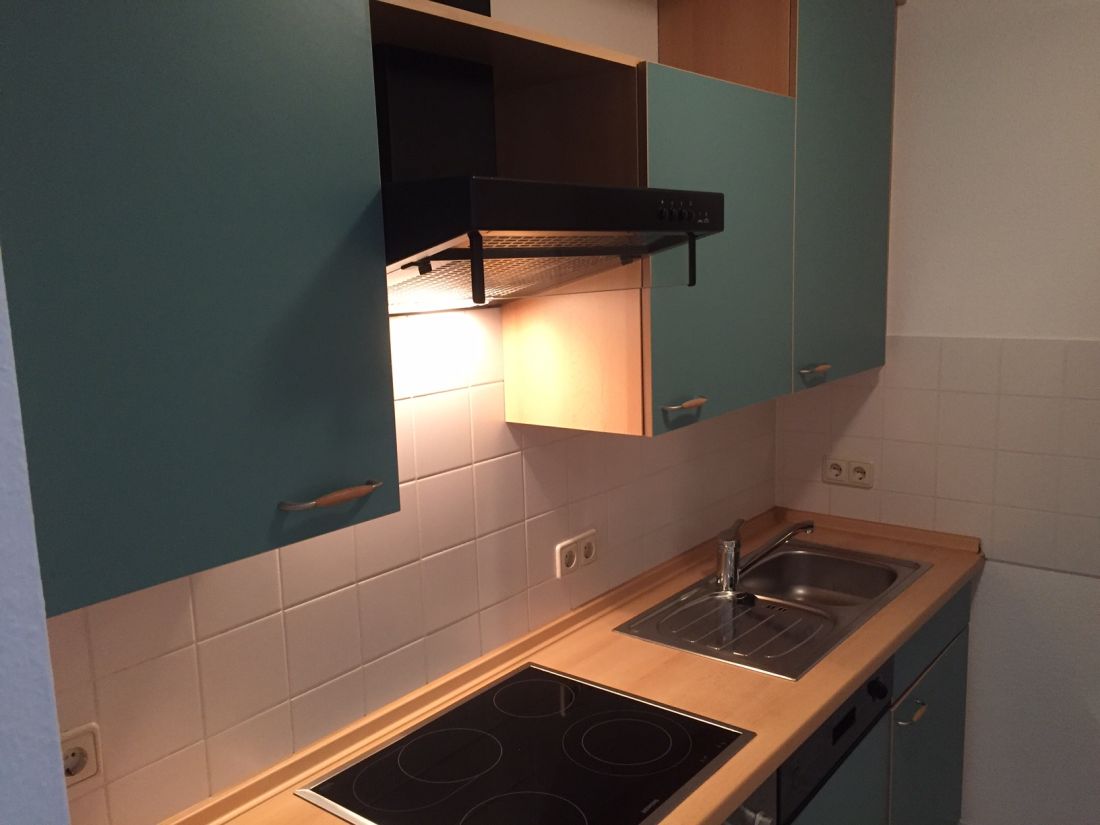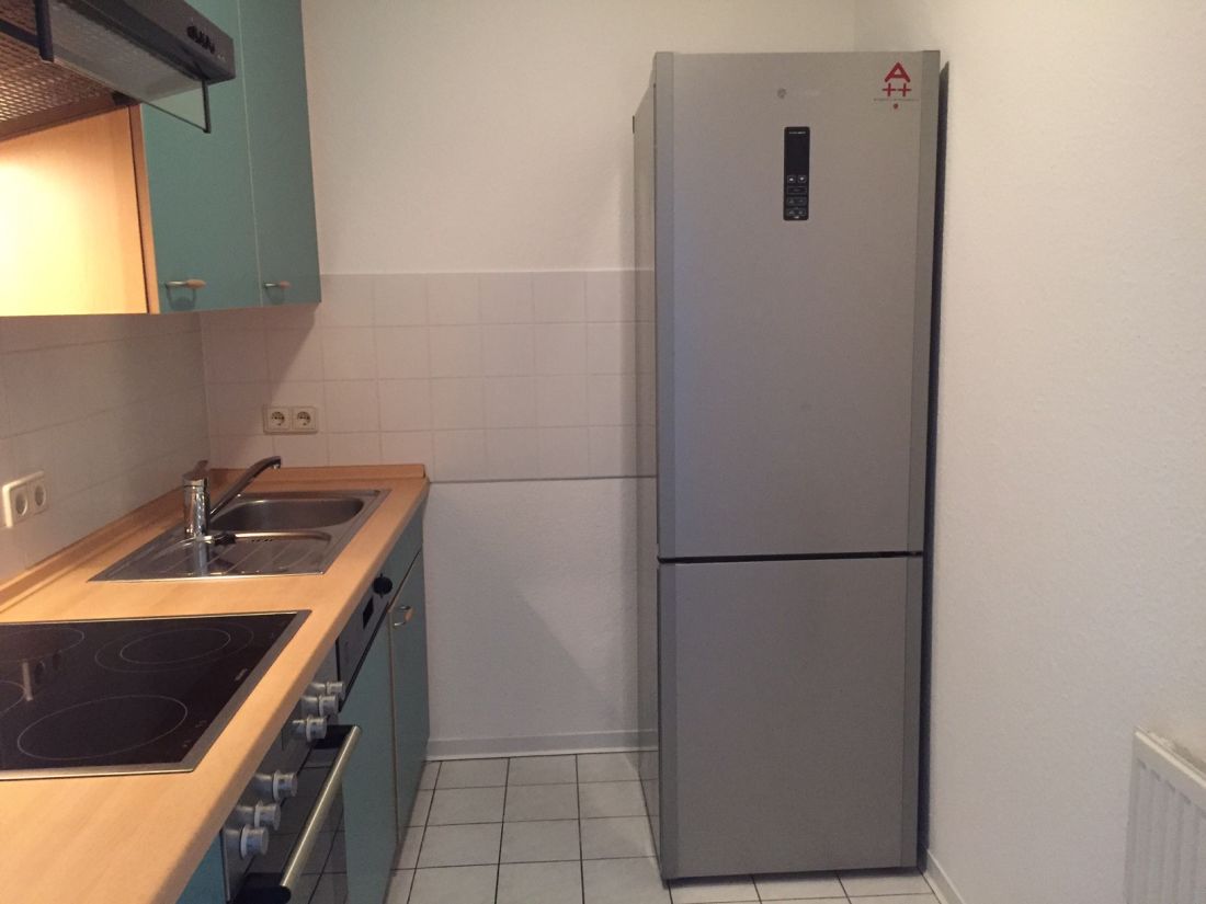 - Einbauküche bestehend aus Ober- und Unterschränken, neuer Herd + Backofen, Spüle, Spülmaschine, neuer Kühlschrank