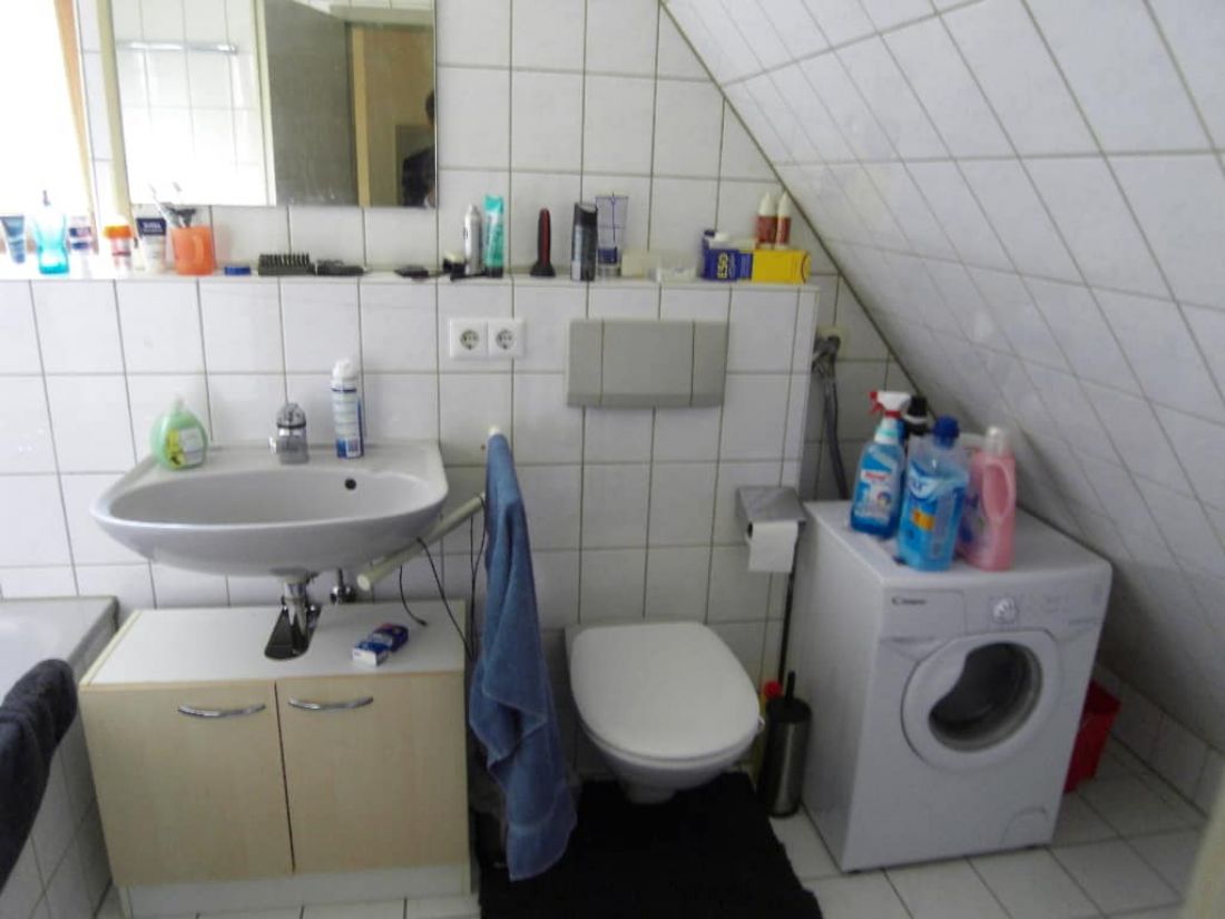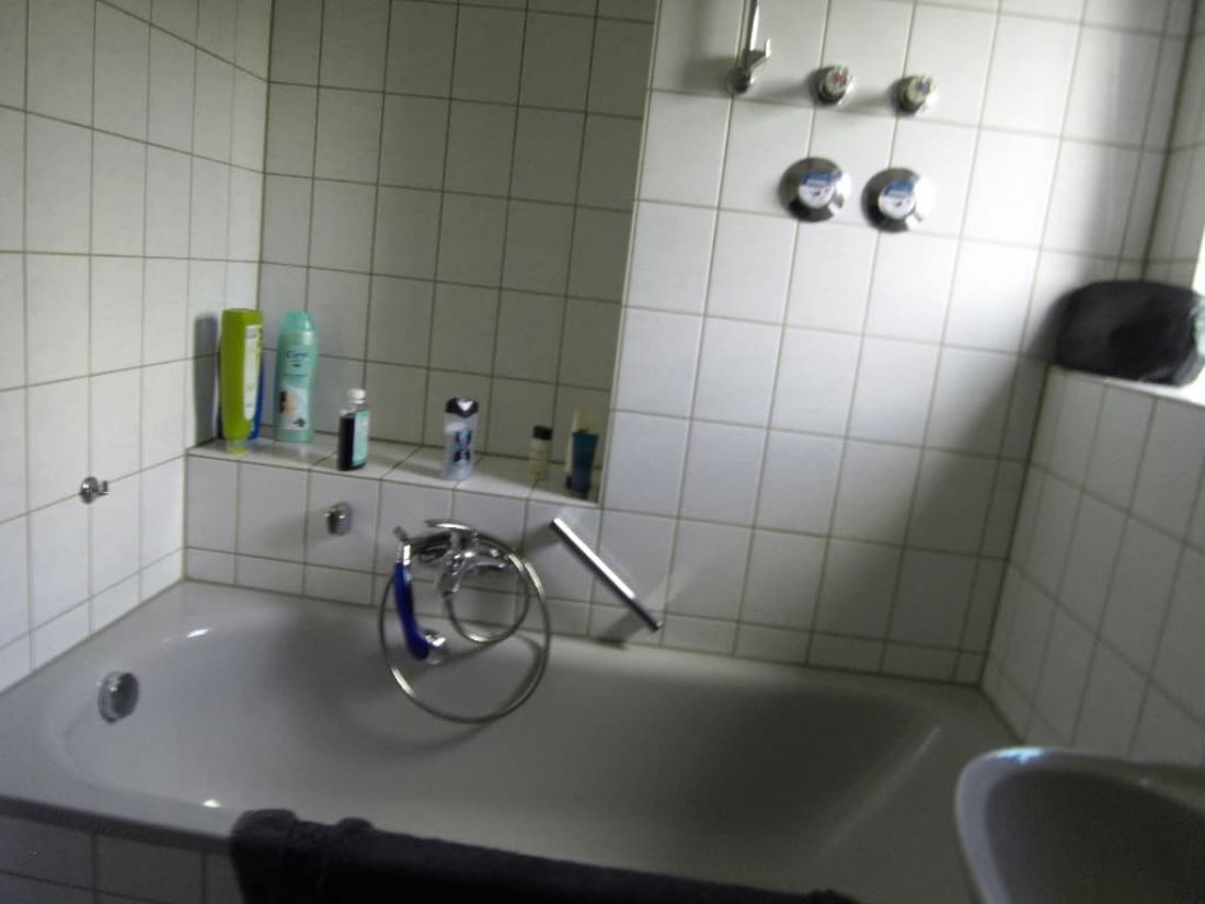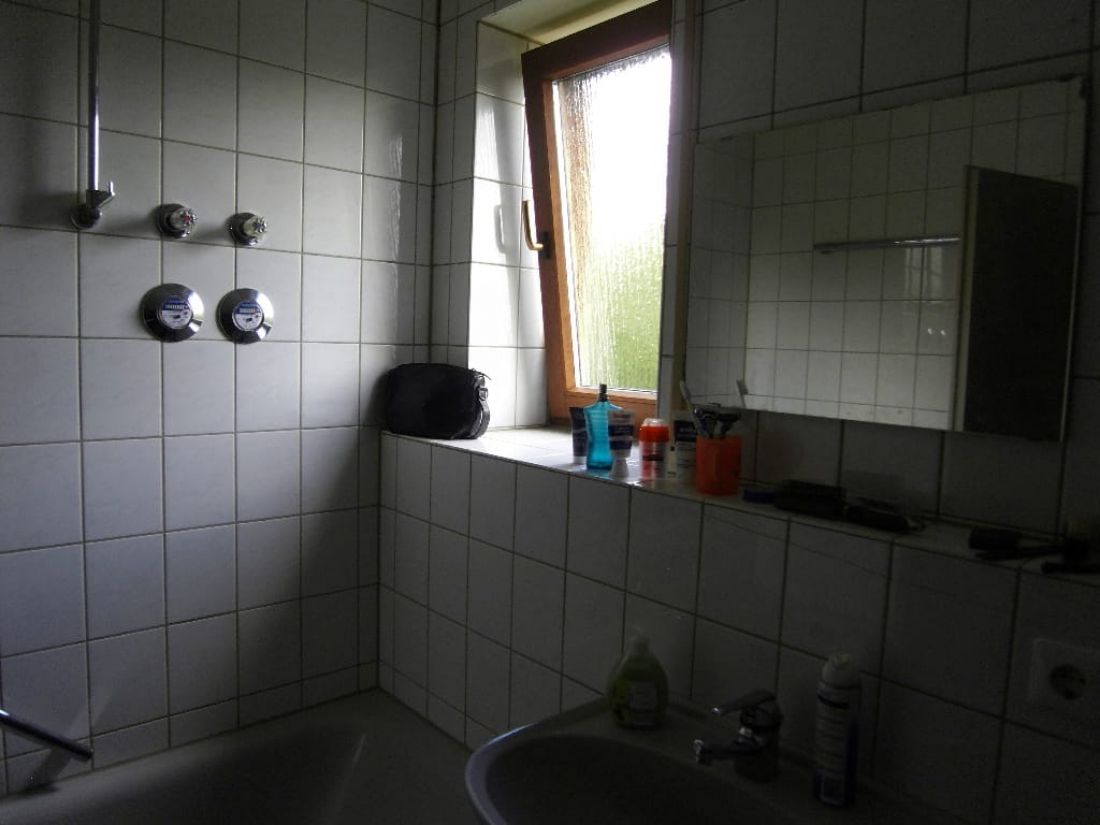 - Bad gefliest mit Fenster und Badewanne, Anschluss für die Waschmaschine