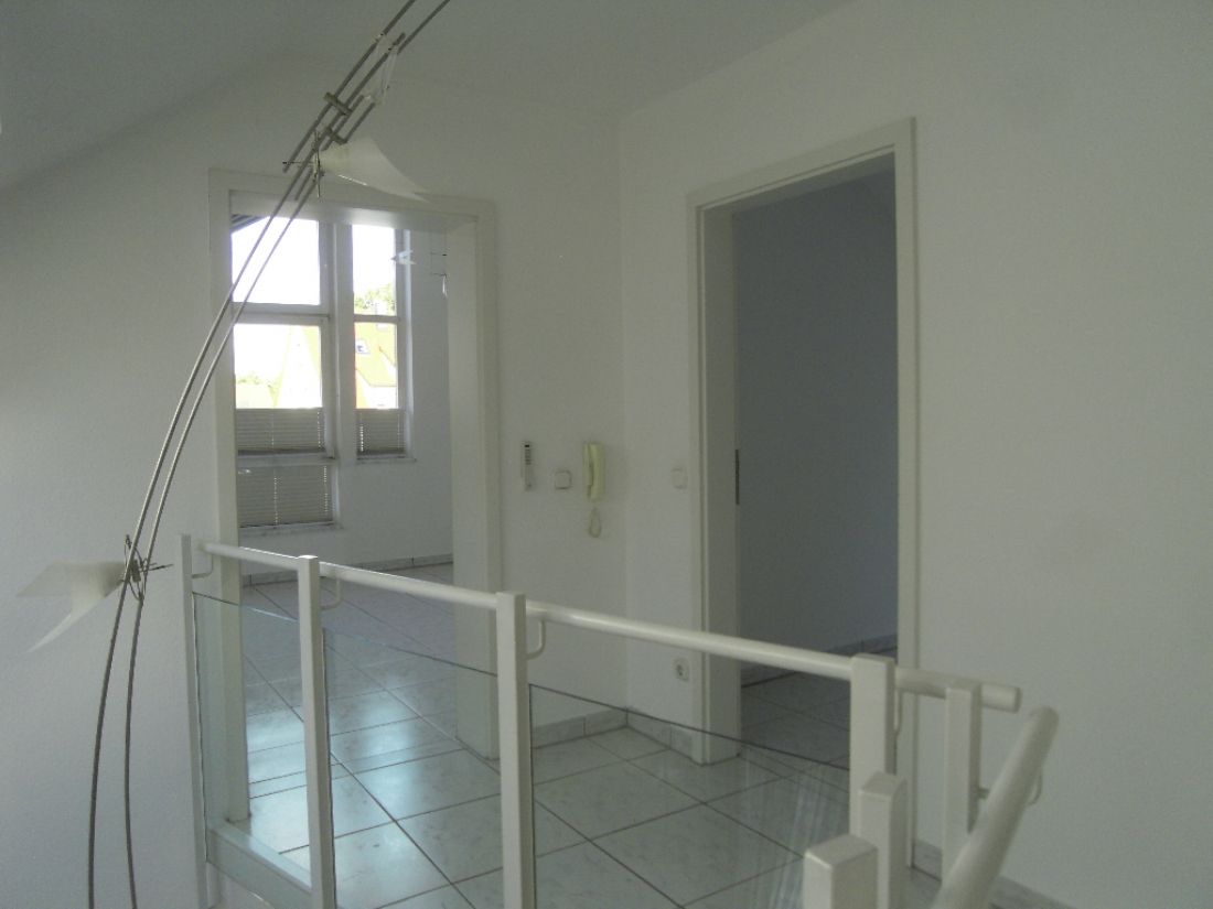 Bei der angebotenen Immobilie handelt es sich um eine 3,5-Zimmer-Galeriewohnung im 1. Obergeschoß eines Mehrfamilienhauses mit lediglich 2 Parteien in ausgesprochen ruhiger Lage. Das Gebäude verfügt über eine Tiefgarage mit zwei Stellplätzen, wovon einer zum Wohnungsangebot gehört und im Kaufpreis inkludiert ist.