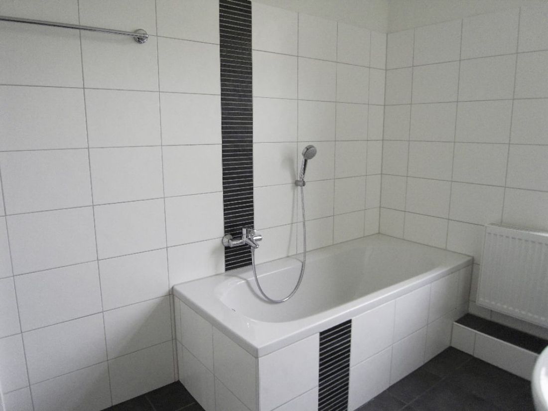 - Bad weiß gefliest mit Fenster und Badewanne,