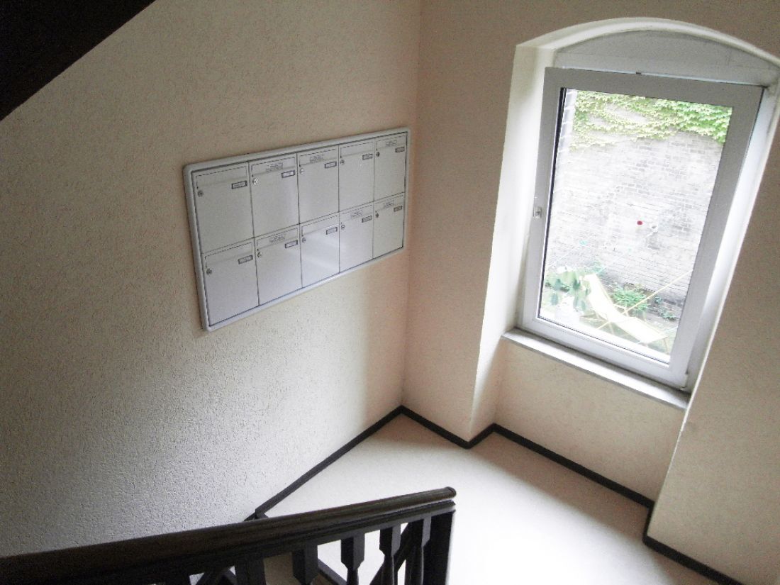 - Kunststoff-Isolierglasfenster mit Kunststoffaußenrollläden zum Hof; Treppenhausfenster Kunststoff-Iso ca. 90er Jahre, WC-Fenster-Kastenfenster