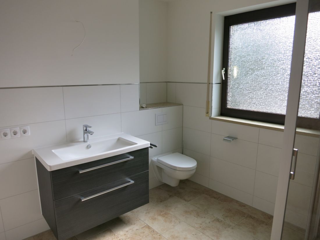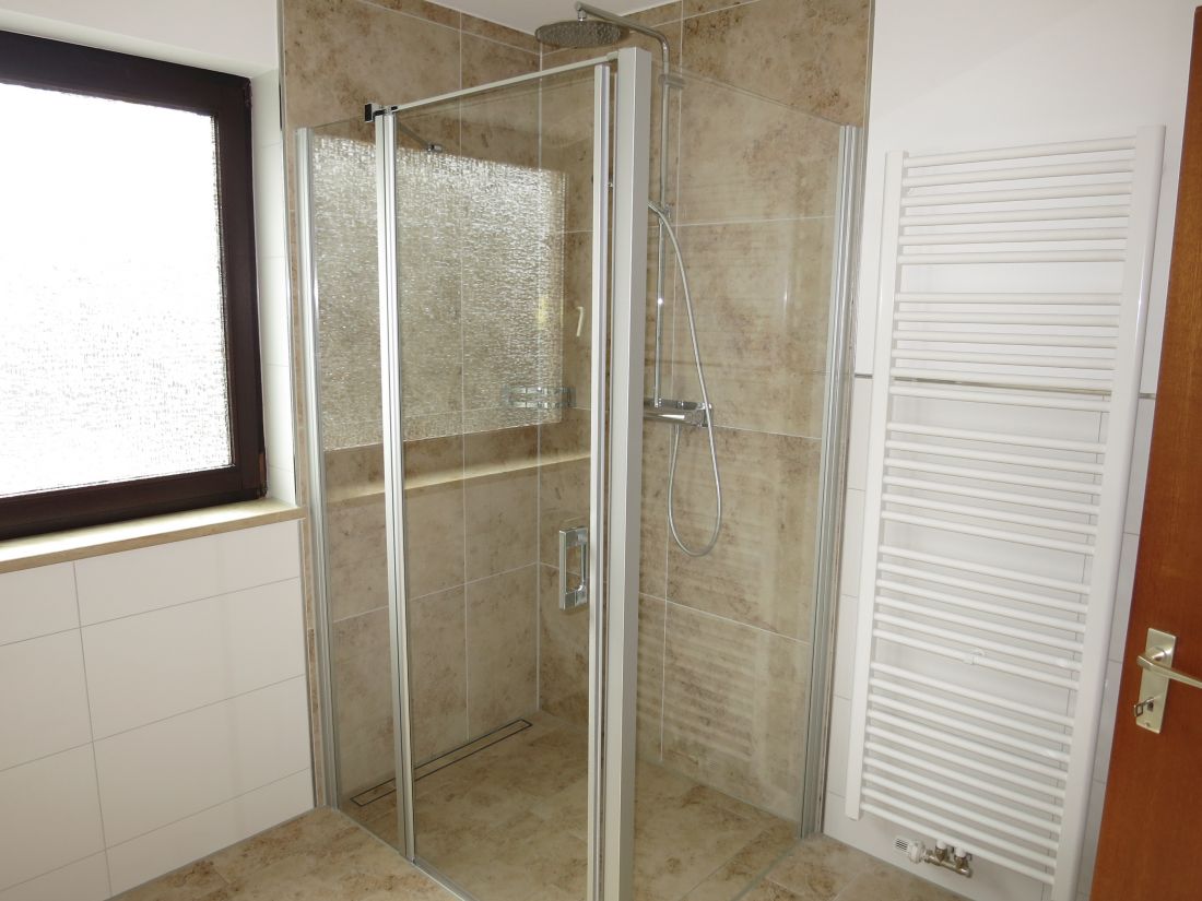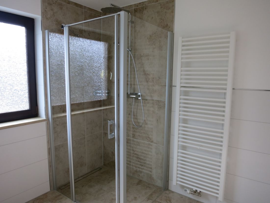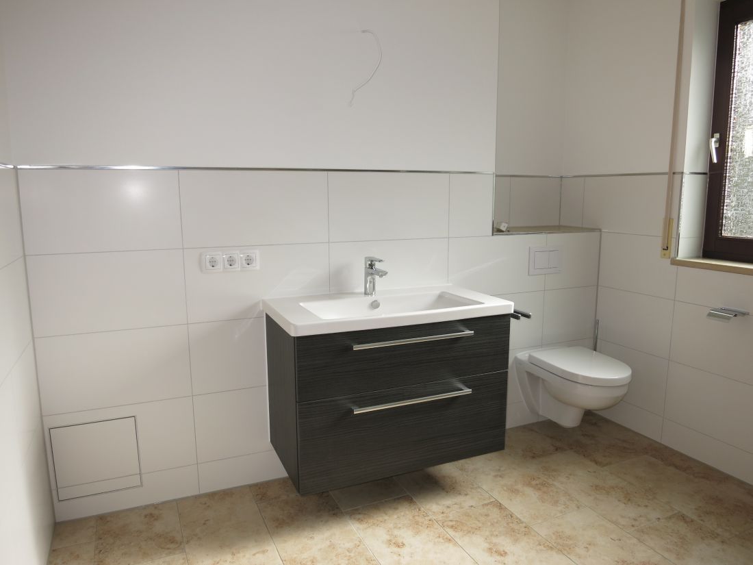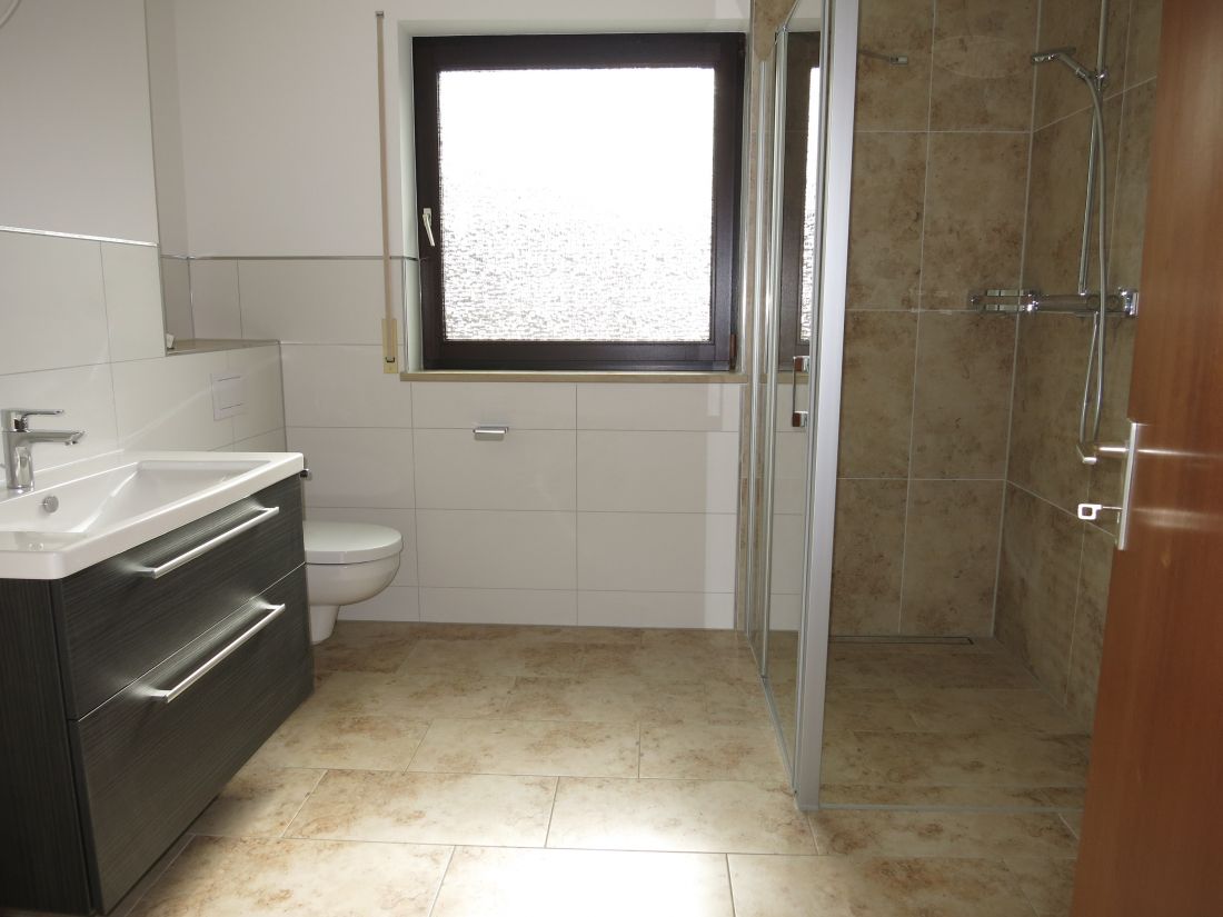 Das gesamte Badezimmer wurde komplett neu hergestellt. Neue Fliesen wurden verlegt und neue Sanitärelemente inkl. Duschkabine verbaut.