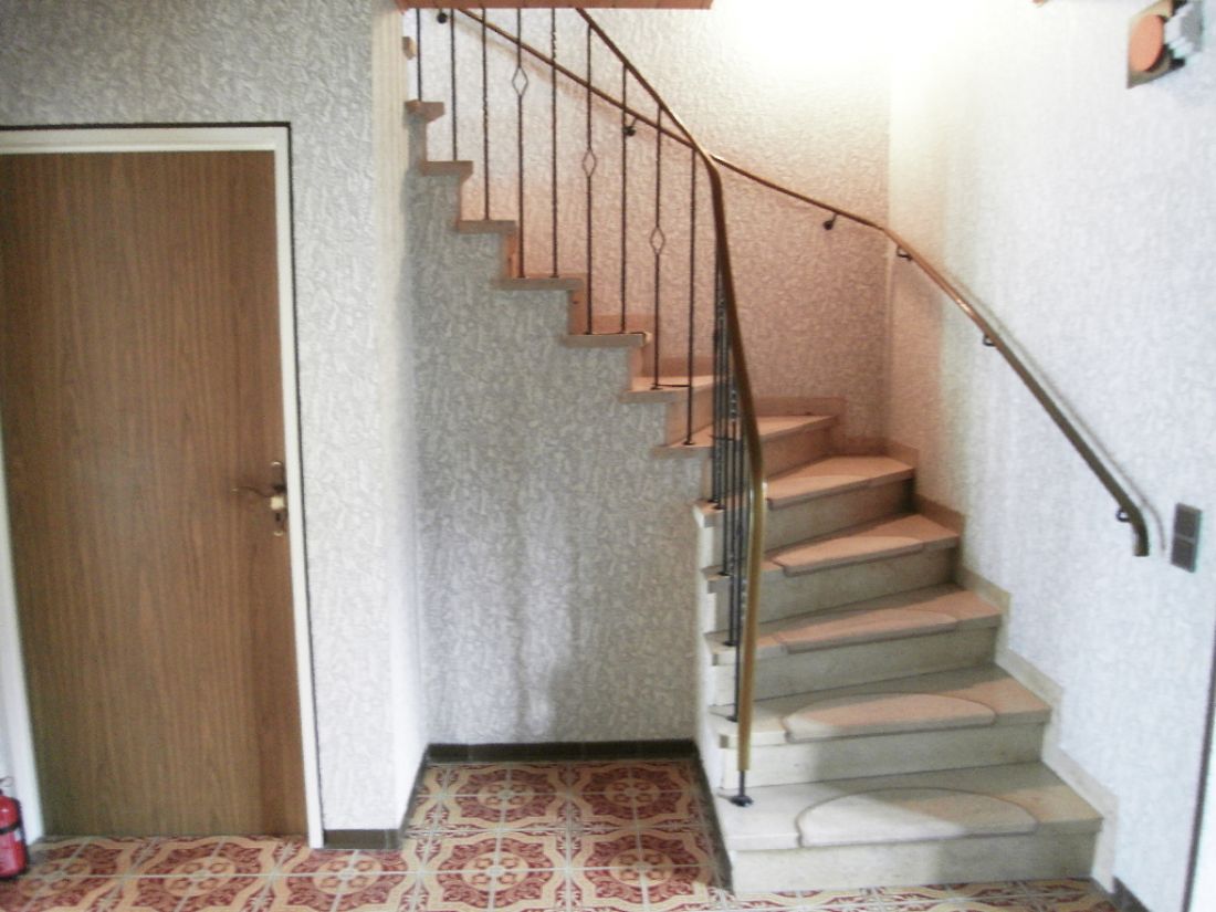 - massive Steintreppe ins 1. OG; Stahl-Holz-Konstruktion ins DG