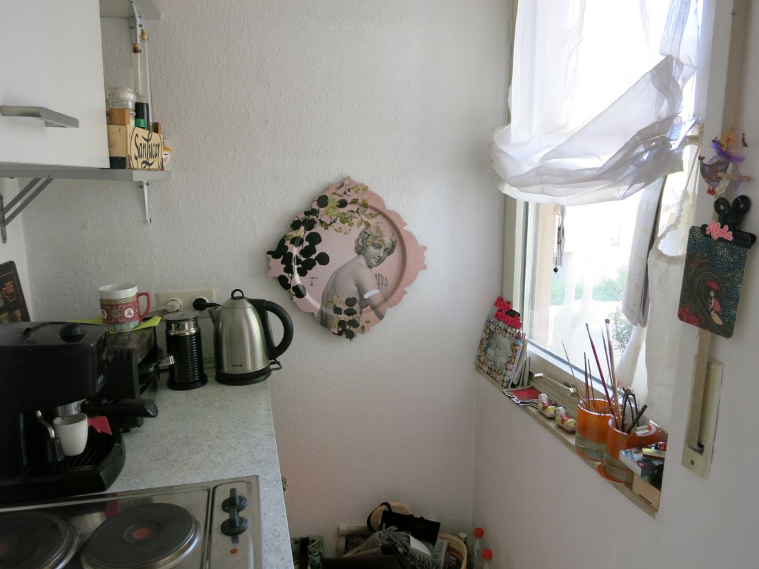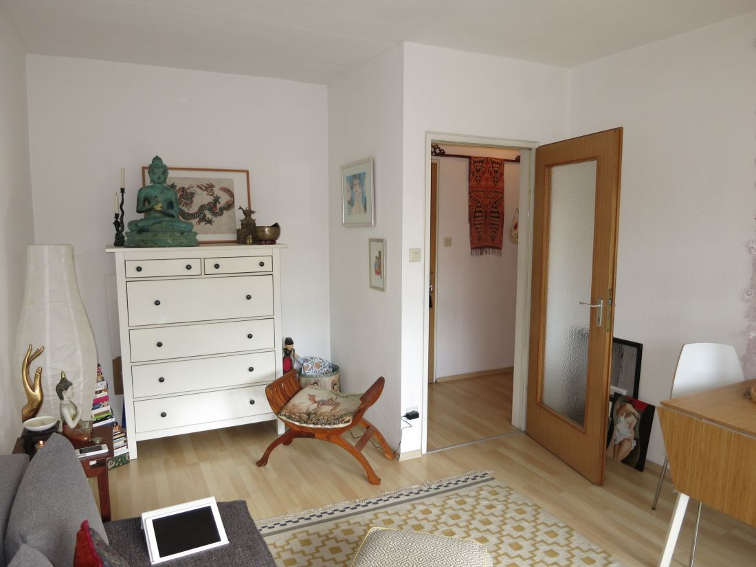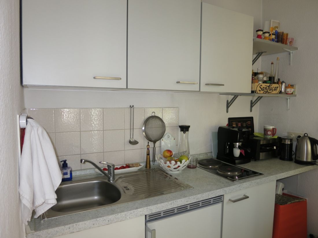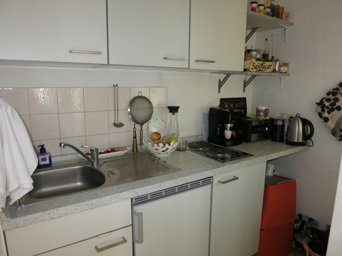 Aufgeteilt ist das Objekt in einen Flur mit Einbauschrank, ein Badezimmer sowie ein Zimmer zum Schlafen und Wohnen mit Zugang zur Küchenzeile und zum Balkon in Süd-Ausrichtung.
