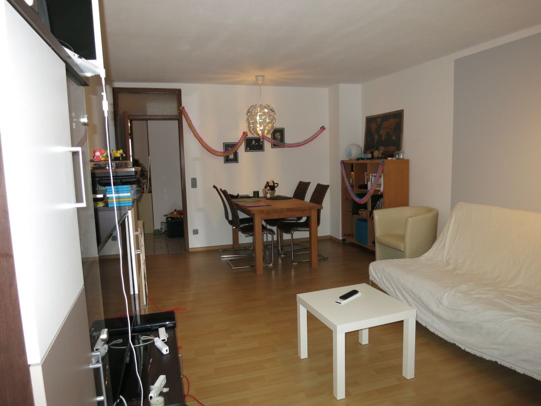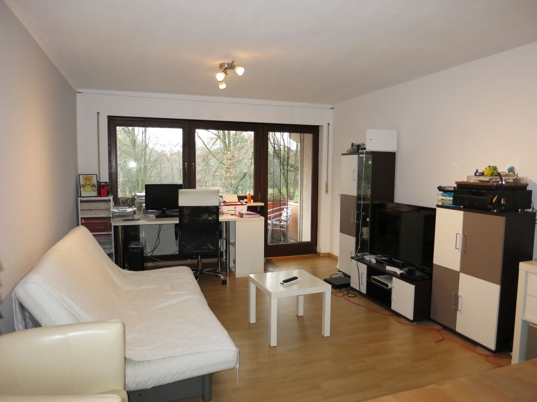 Das Objekt verfügt über einen großen und hellen Wohn- und Essbereich mit Zugang zum überdachten Balkon, ein Schlafzimmer, eine Küche sowie ein Badezimmer mit Badewanne.