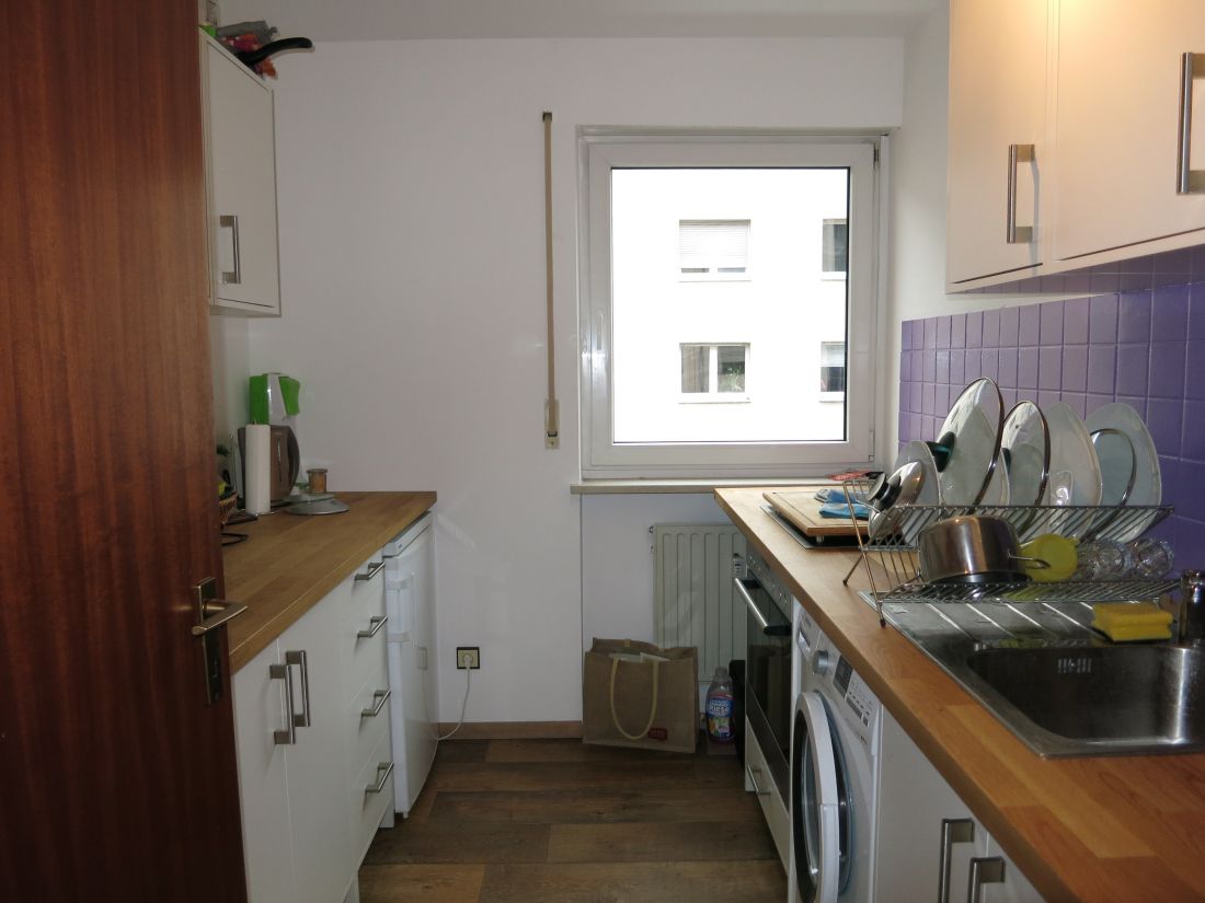 Die vorhandene, neuwertige (1,5 Jahre) Einbauküche kann bei Bedarf vom Mieter abgelöst werden. Ebenso die Balkonfliesen in Holzoptik.