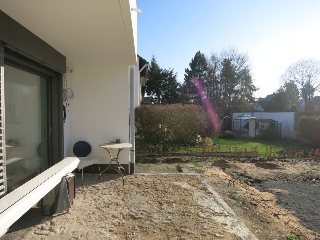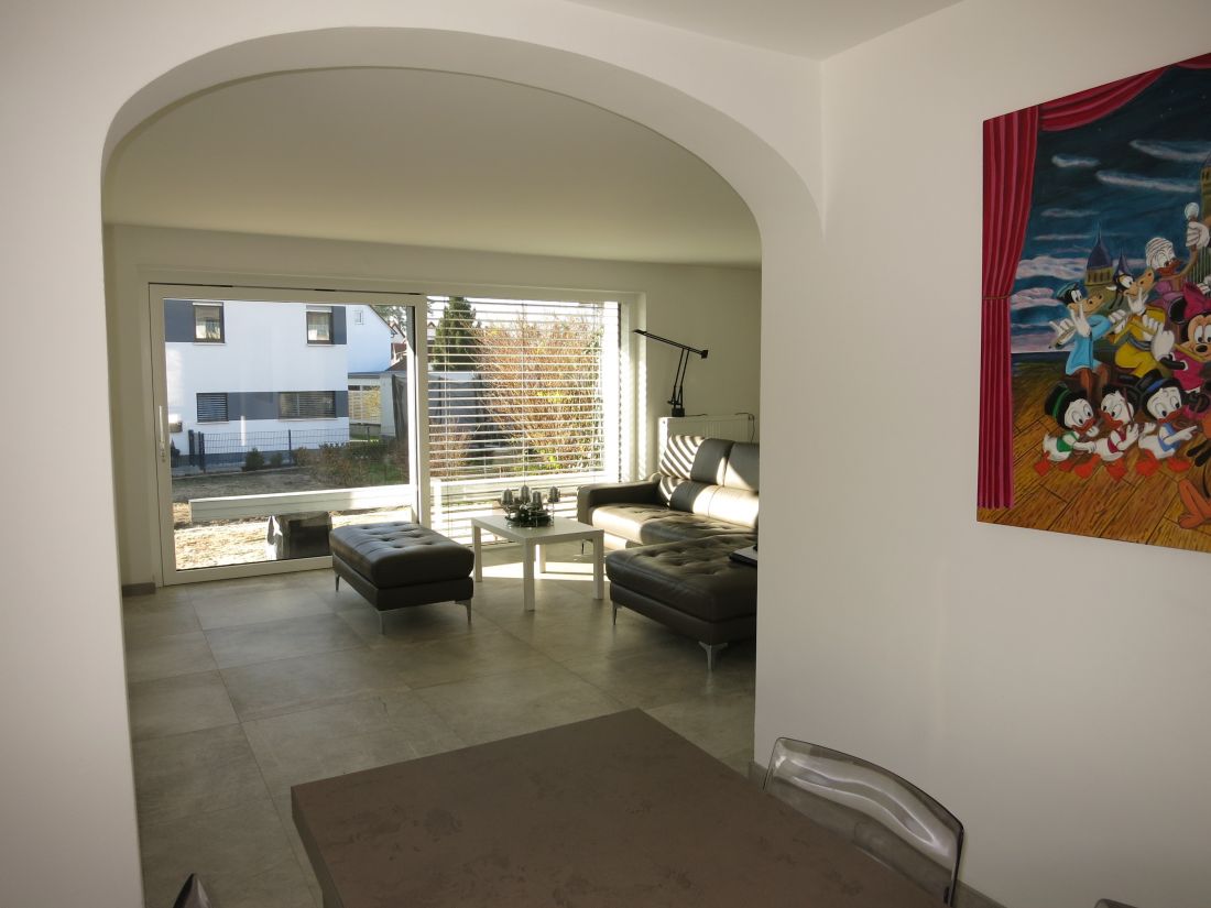Über das Wohnzimmer gelangen Sie auf die ca. 9 qm große Terrasse in Süd-West-Ausrichtung und in den Garten.