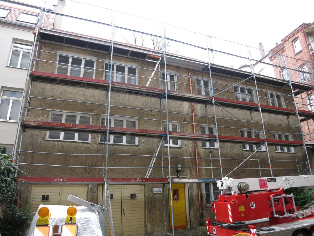 Die Fassade erhält abschließend einen neuen Anstrich.