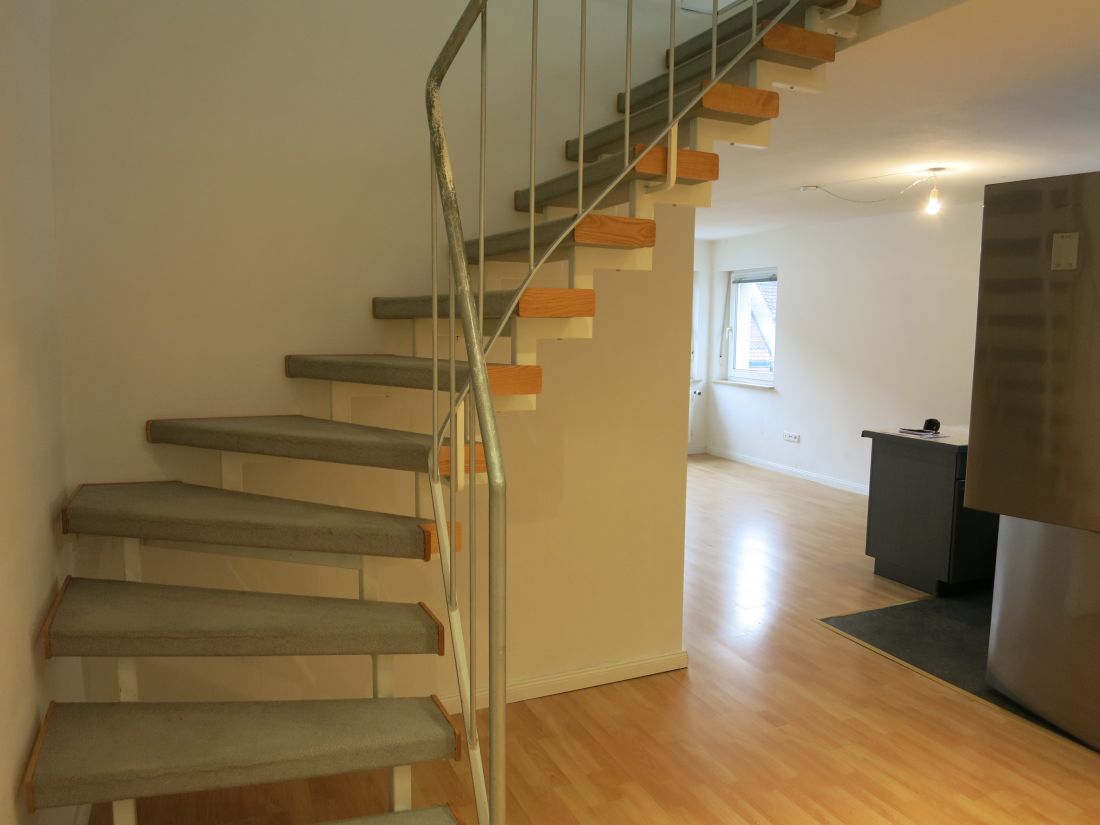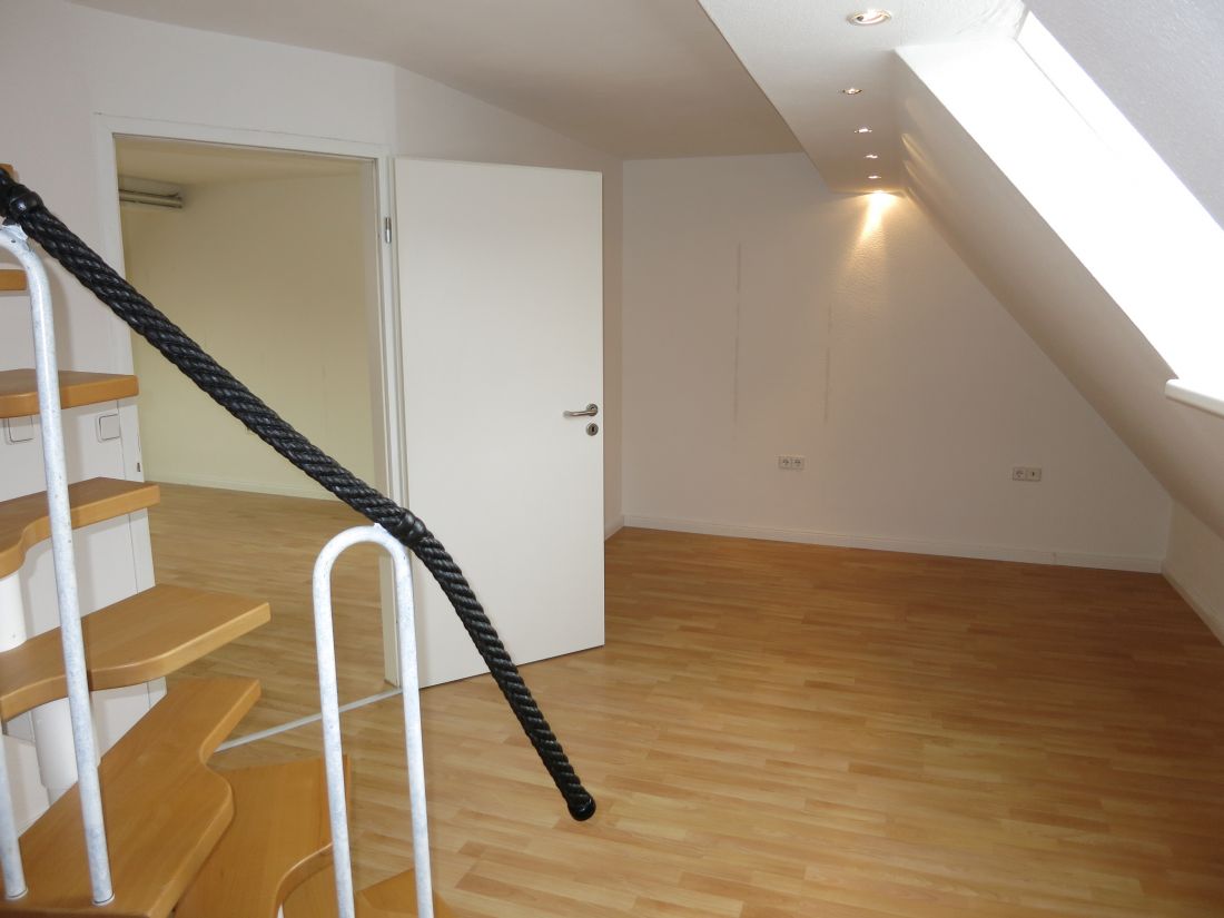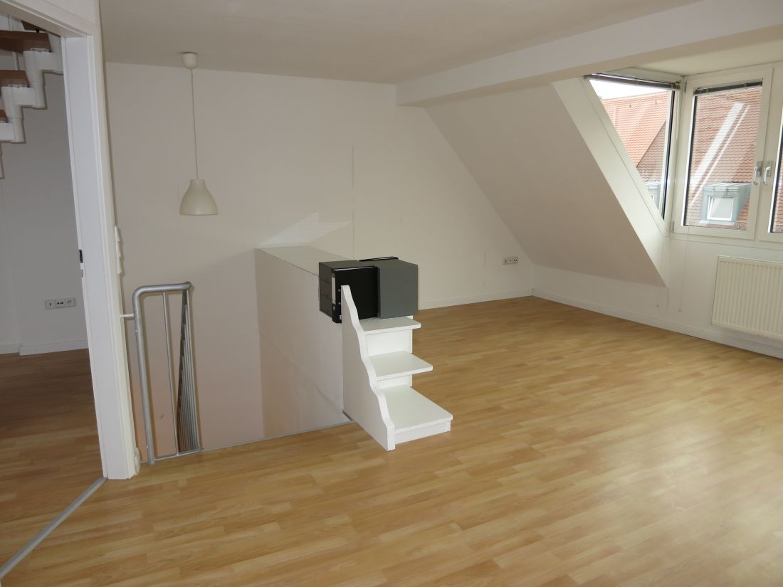 Das Objekt erstreckt sich über drei Etagen (3. OG u. 1. u. 2. DG) und verfügt über helle Räumlichkeiten, eine Einbauküche und eine Terrasse.
