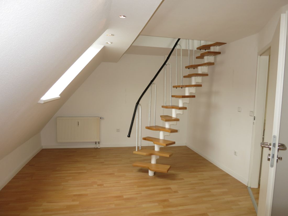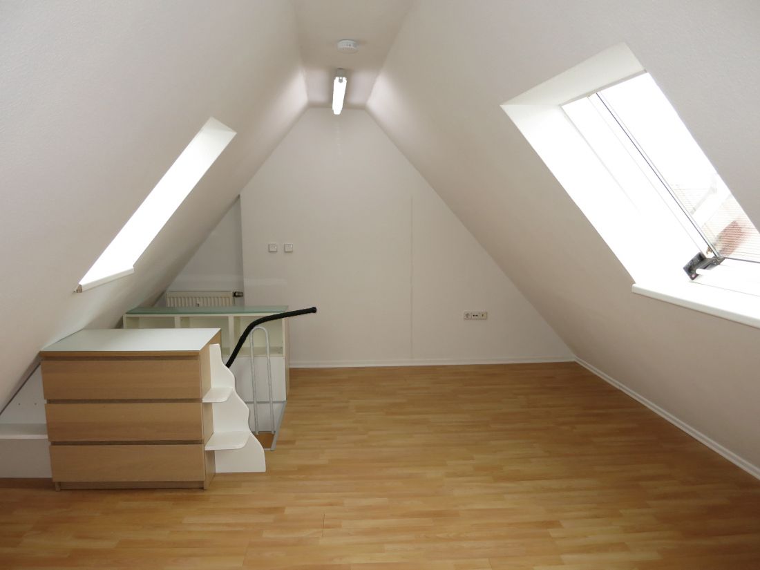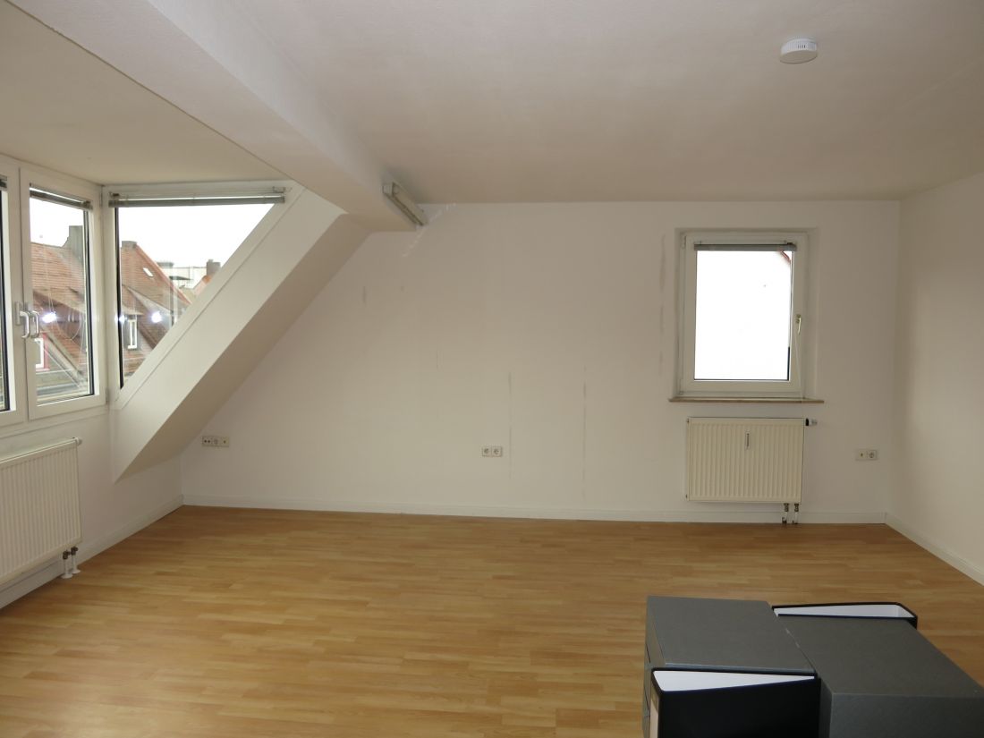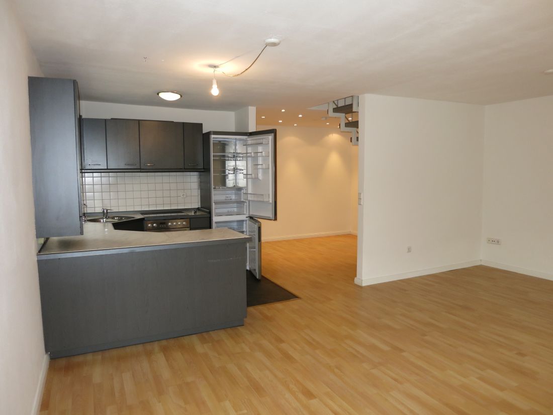 Das Objekt erstreckt sich über drei Etagen (3. OG u. 1. u. 2. DG) und verfügt über helle Räumlichkeiten, eine Einbauküche und eine Terrasse.