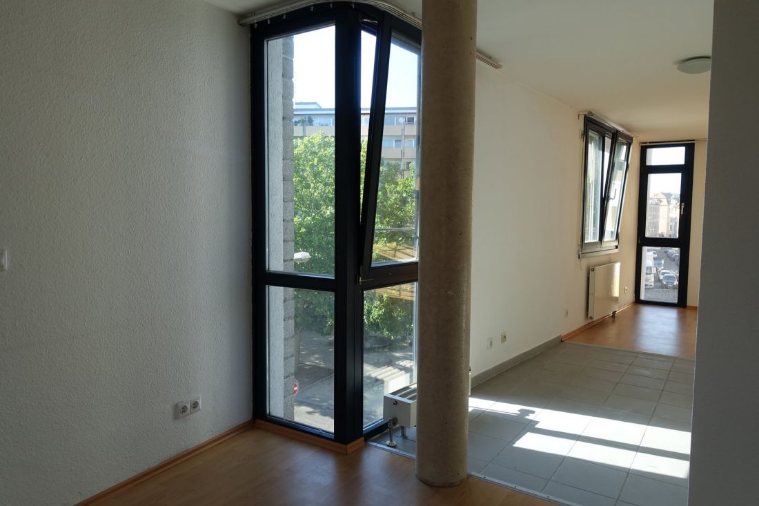 Der Schnitt der Wohneinheit ließe eine Abteilung des Schlafbereiches zu, insofern man den Schnitt (ähnlich dem eines Loftes) so nicht bevorzugt. Ein französisches Fenster mit Sonnenschutz-Außenjalousie verleiht den Räumen ein besonderes Flair.