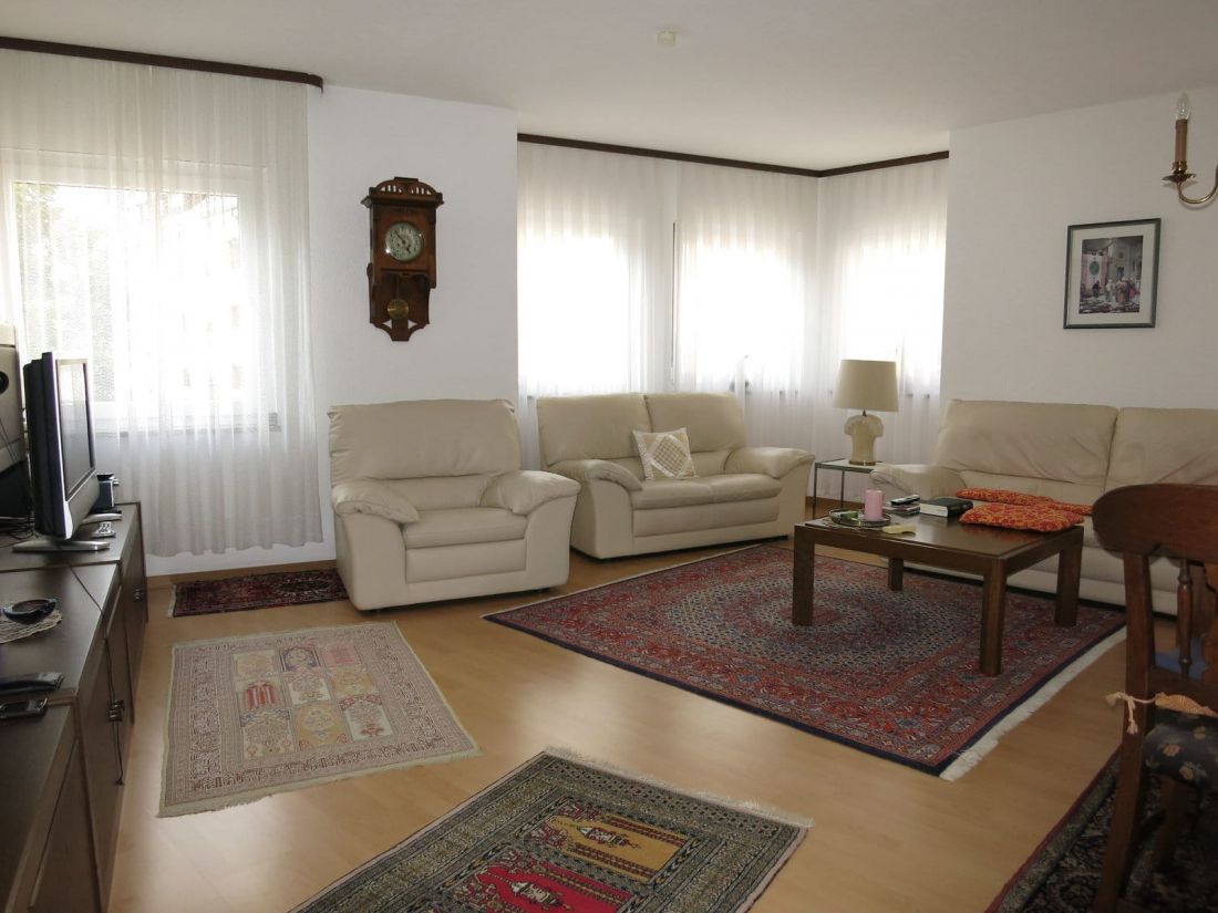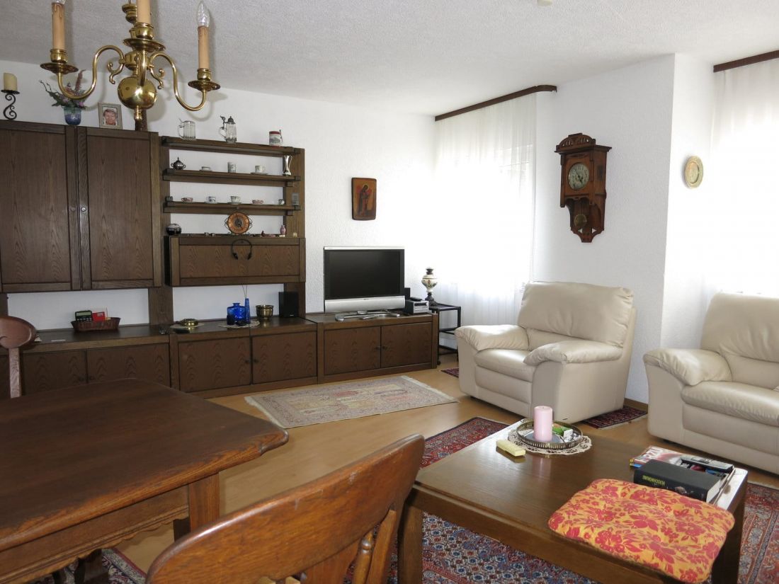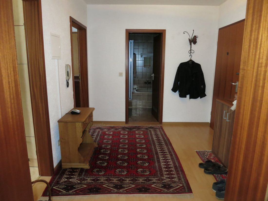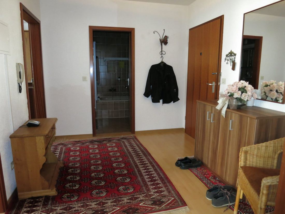 - Fußböden: Laminat in Flur, Wohn- und Schlafzimmer sowie Fliesen in Bad und PVC-Boden in der Küche