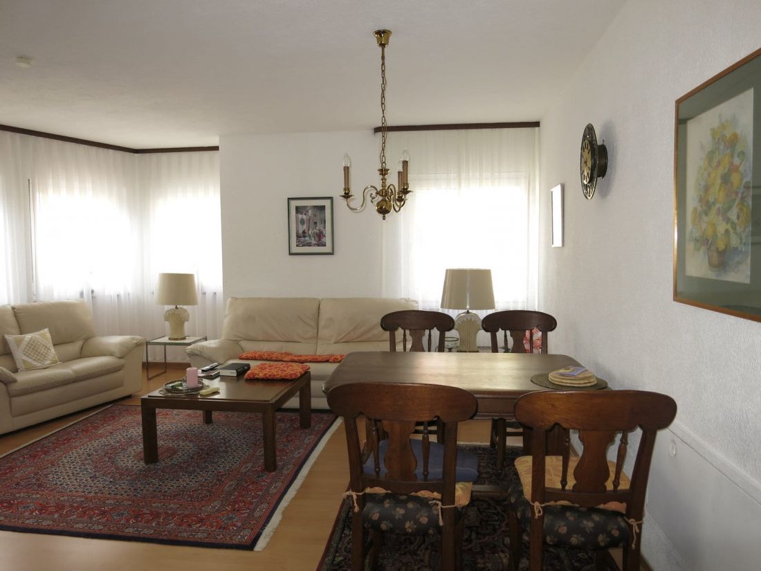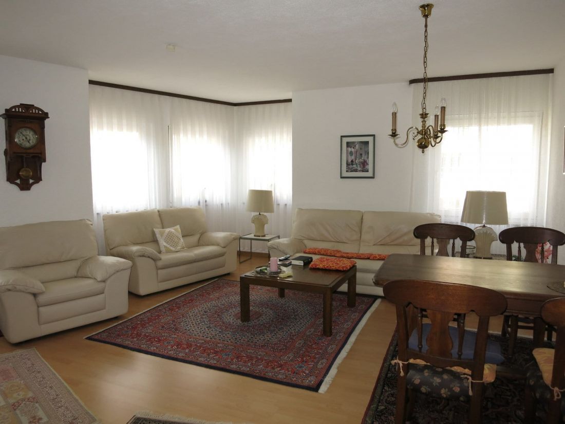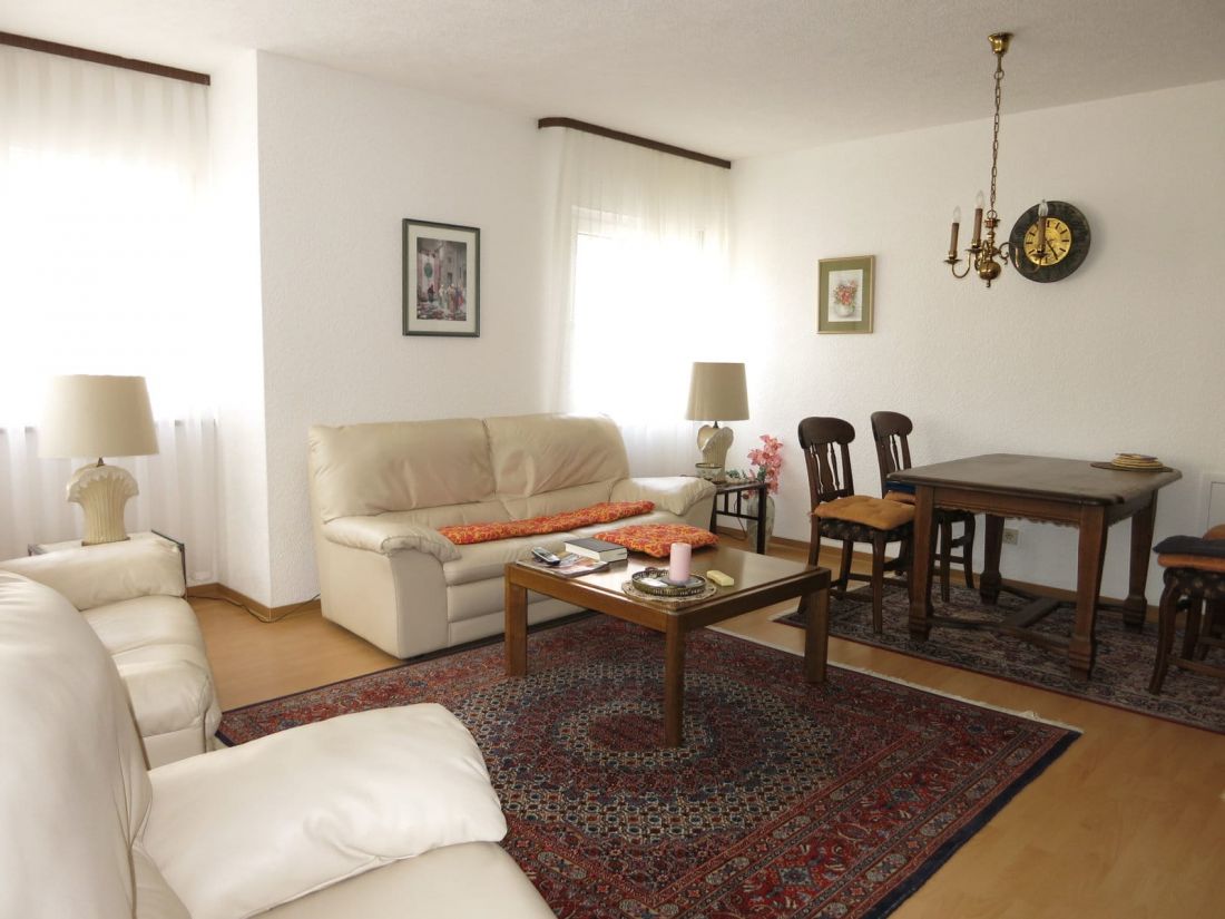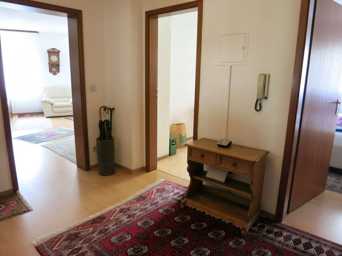 - Fußböden: Laminat in Flur, Wohn- und Schlafzimmer sowie Fliesen in Bad und PVC-Boden in der Küche
